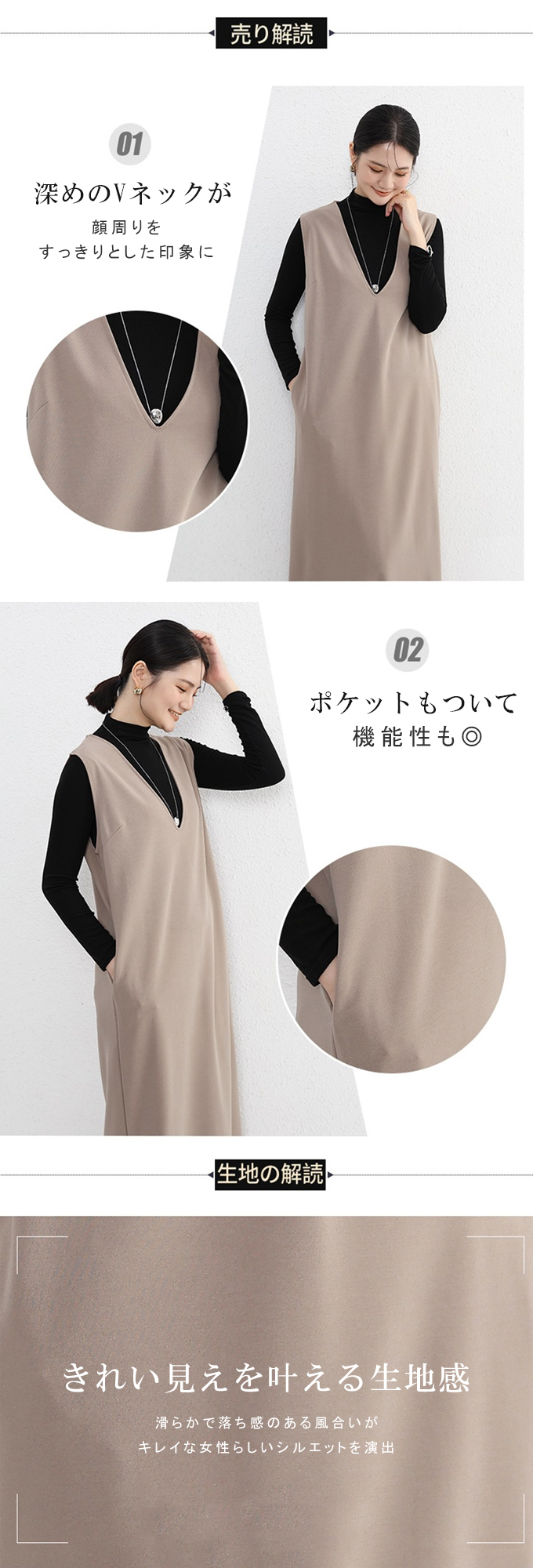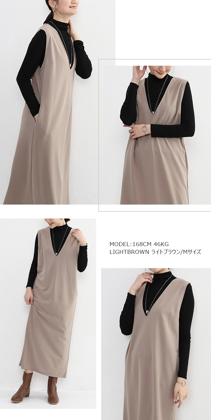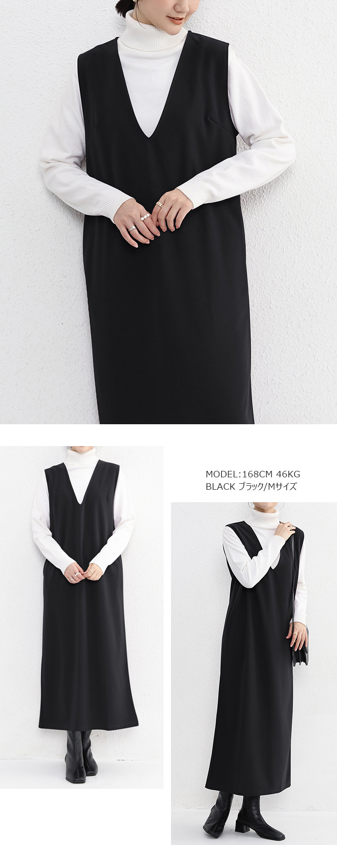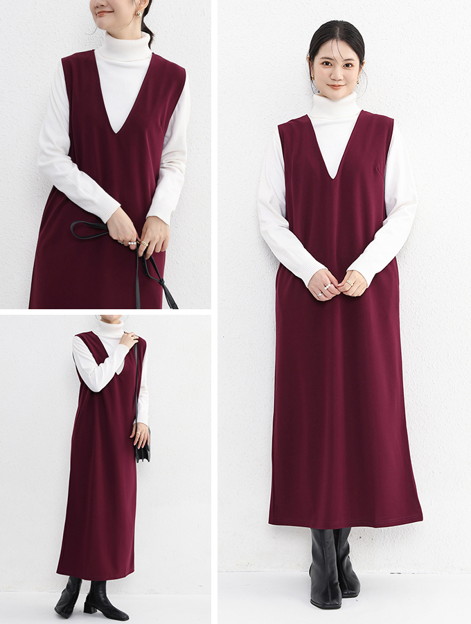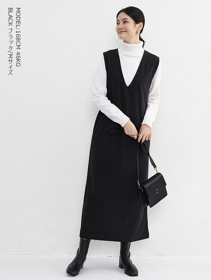 Vネックジャンパースカート ワンピース 体型カバー レイヤード レディース ジャンパースカート