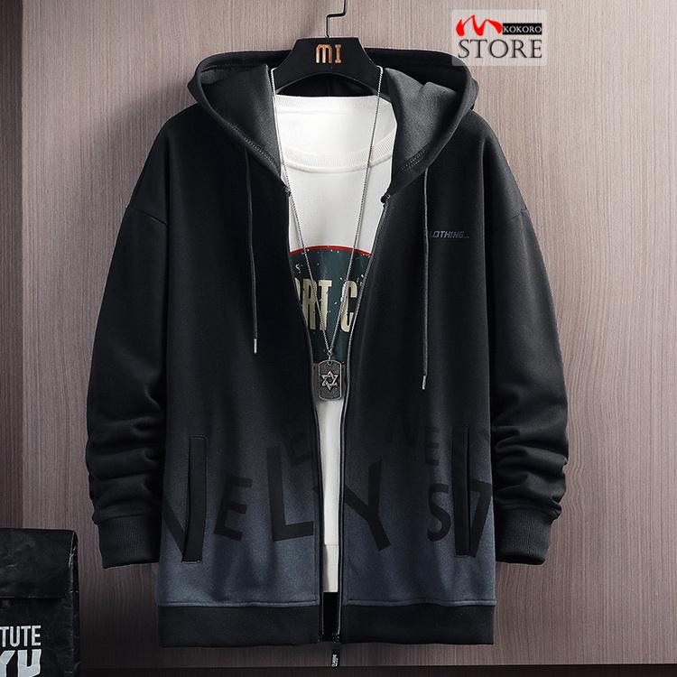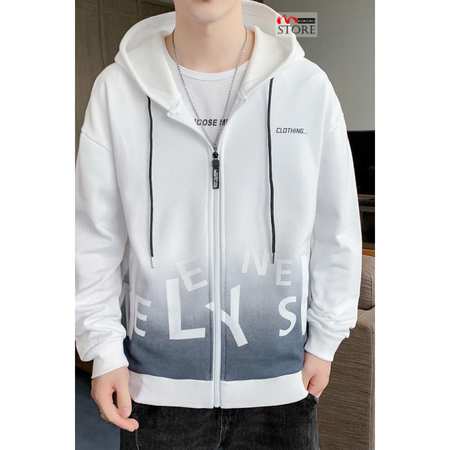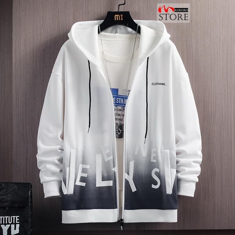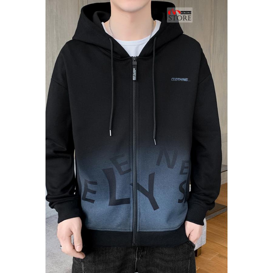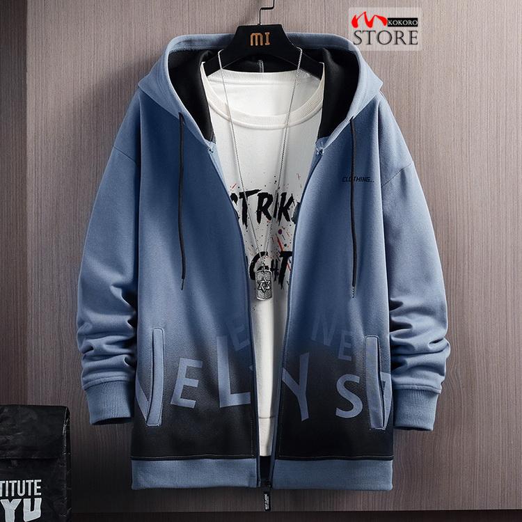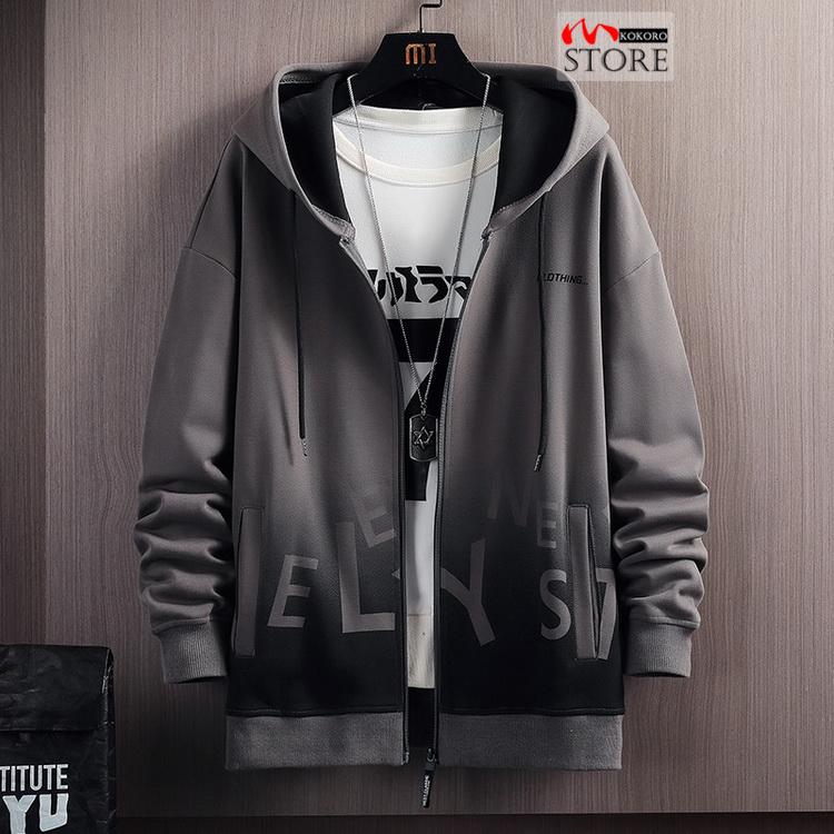 ジップアップパーカー メンズ パーカー 春服 春物 トップス きれいめ ロゴ 長袖 グラデーション 2023 春秋 新作