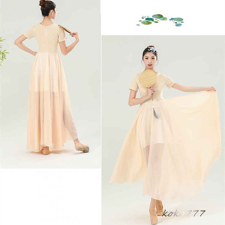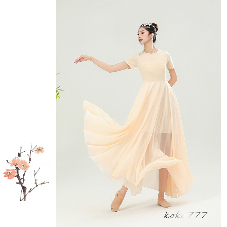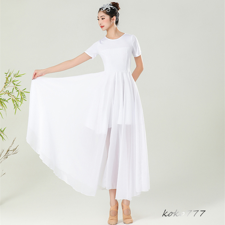 ワンピース レディース ロングドレス ダンスウエア 半袖 踊り 女子服 コスチューム 発表会 舞台衣装 シフォン モダンダンス 部活 練習着 無地 パーティー