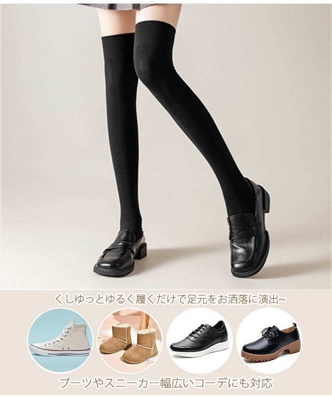 くつした オーバーニー 靴下 ストレッチ ニーハイソックス サイハイ 10代 20代 30代 40代 黒 白 着圧ソックス 着痩せ 滑り止め ホワイト ブラック コスプレ コスチューム ファッション小物 美脚 ストッキング 膝丈 お洒落 ずり落ちしにくい 履きやすい 防寒着 滑り止め 女性用 シンプル 秋冬