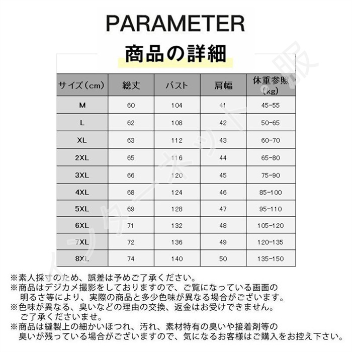 サイズ: M L XL 2XL 3XL 4XL 5XL 6XL 7XL 8XL