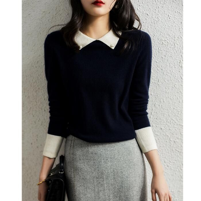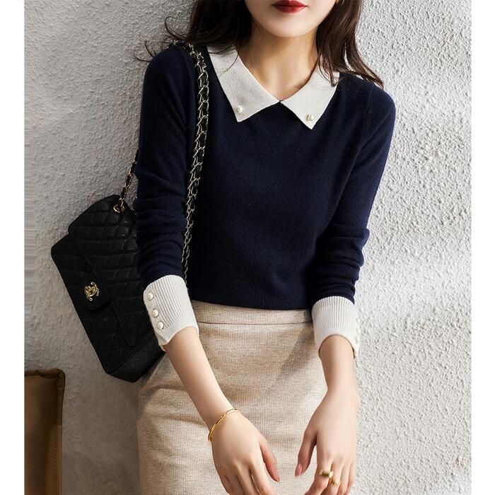 トップス ニット セーター カットソー バイレディース きれいめ 襟付き 上品 おしゃれ 通勤 シンプル オフィス 大人 カジュアル 長袖 フェミニン 可愛い