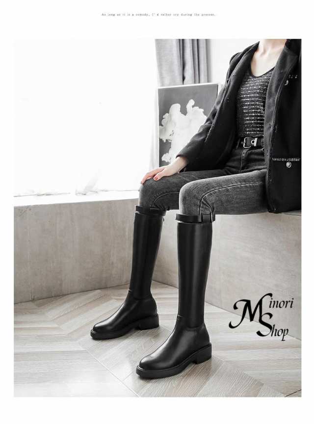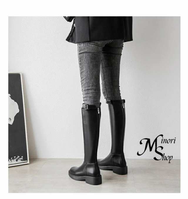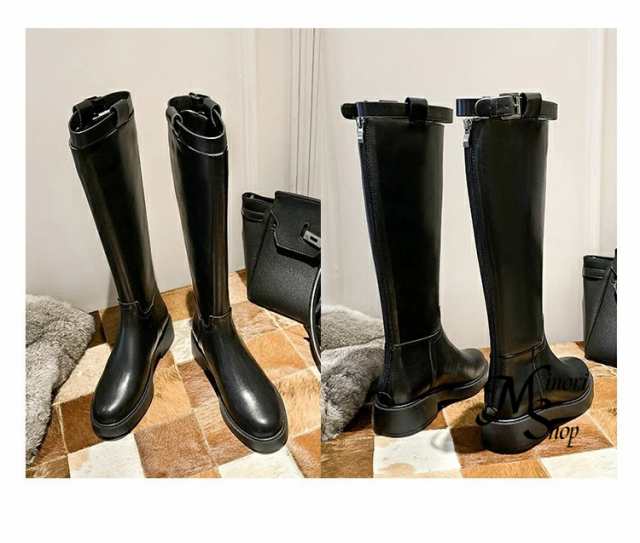 ★大人っぽいクラシカルスタイルに欠かせない、上品なジョッキーブーツ。サイドのゴールドバックルがよりクラシカルな雰囲気を高めてくれます。