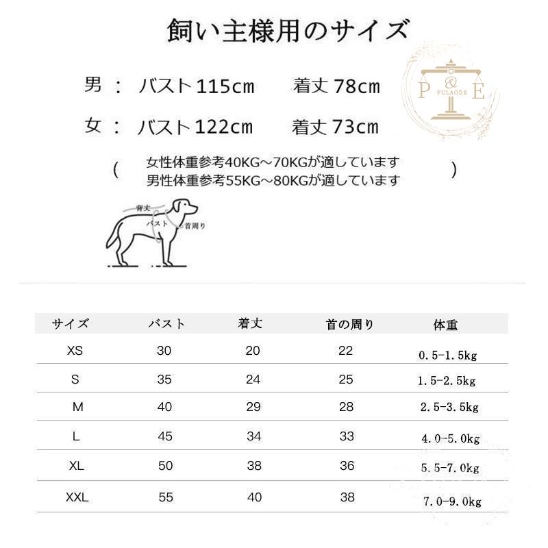 サイズ ペット XS ペット S ペット M ペット L ペット XL ペット XXL 男飼い主用 F(+980円) 女飼い主用 F(+980円)