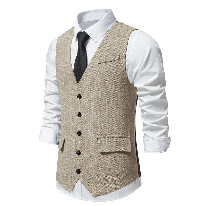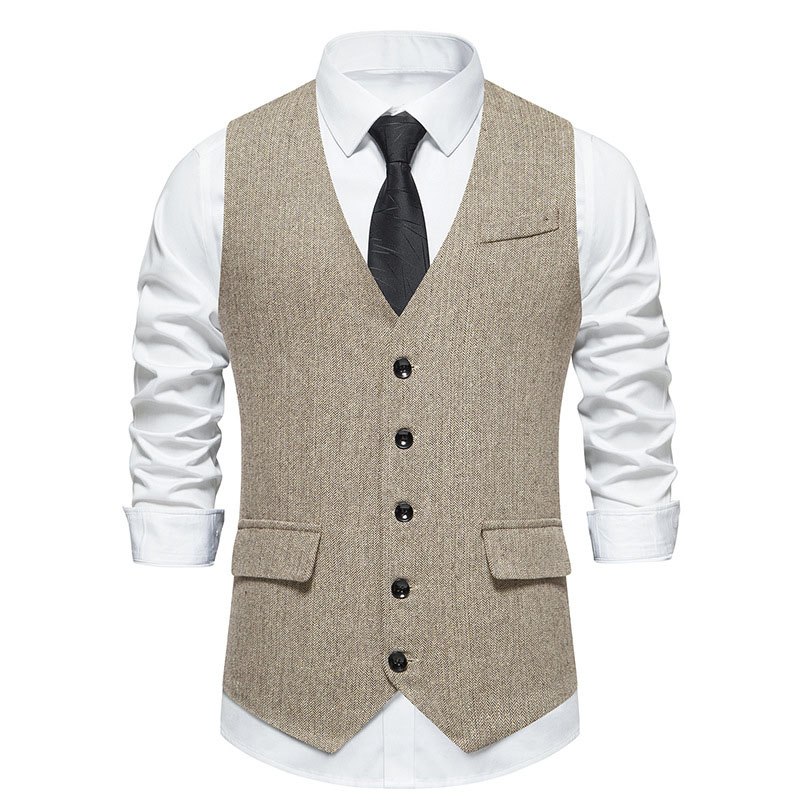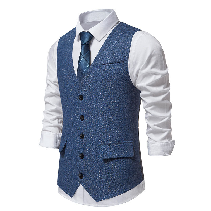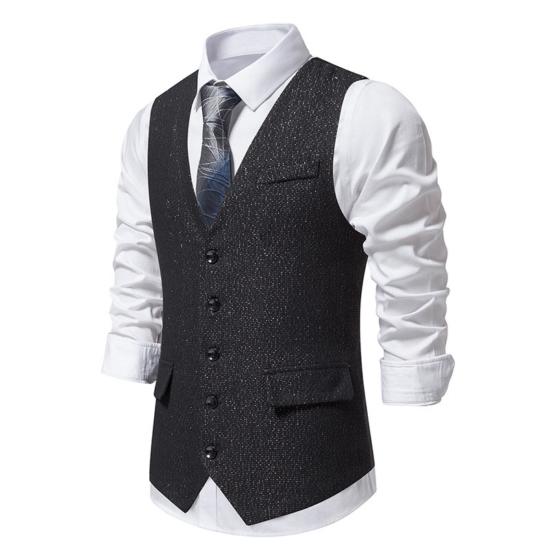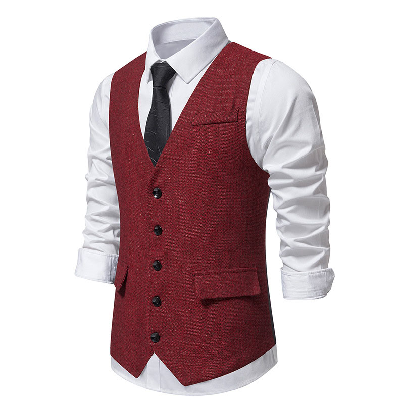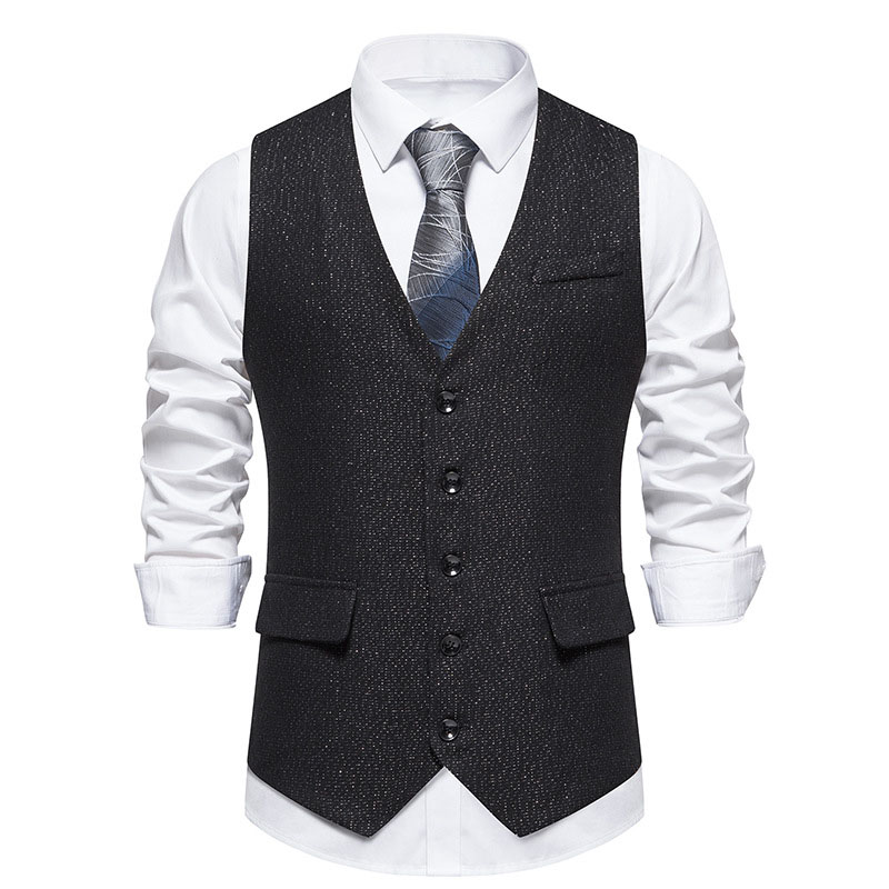 お手持ちのスーツやジャケットに合わせやすい、ドレスシャツや、カットソーでのベストスタイルも上品にきまります。