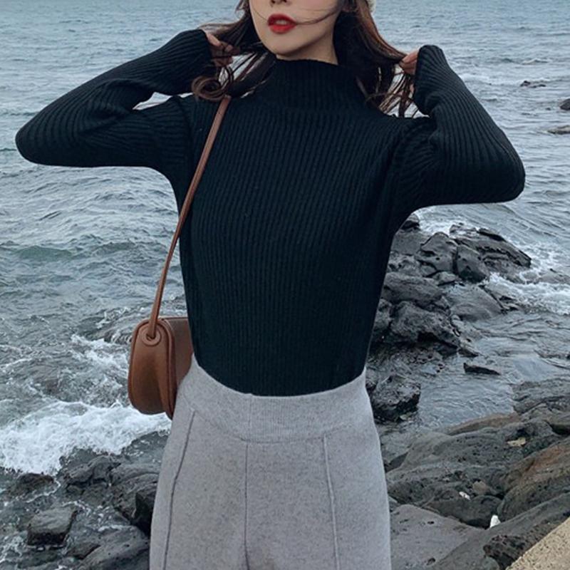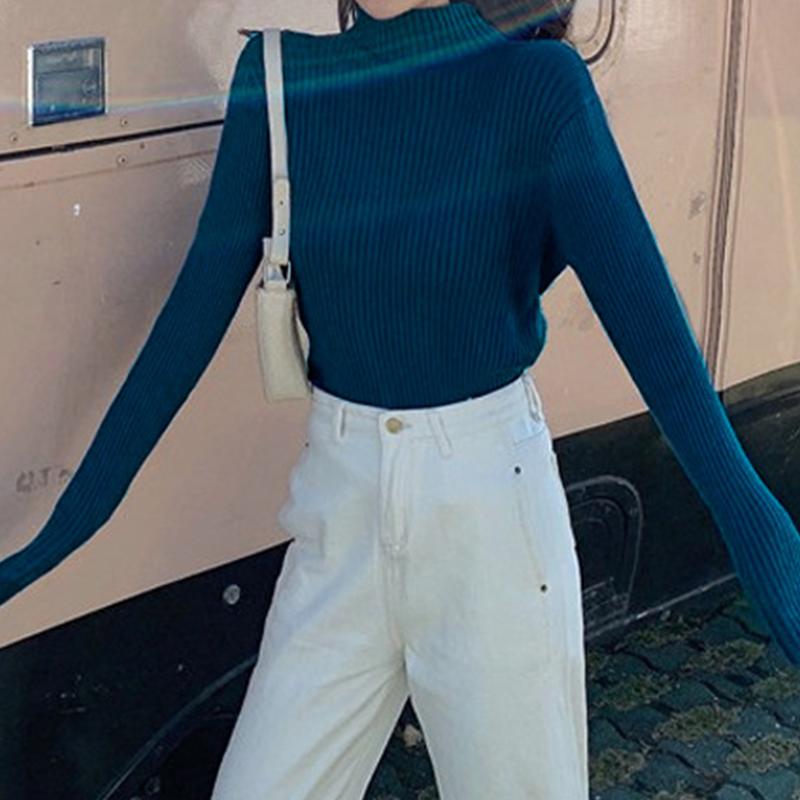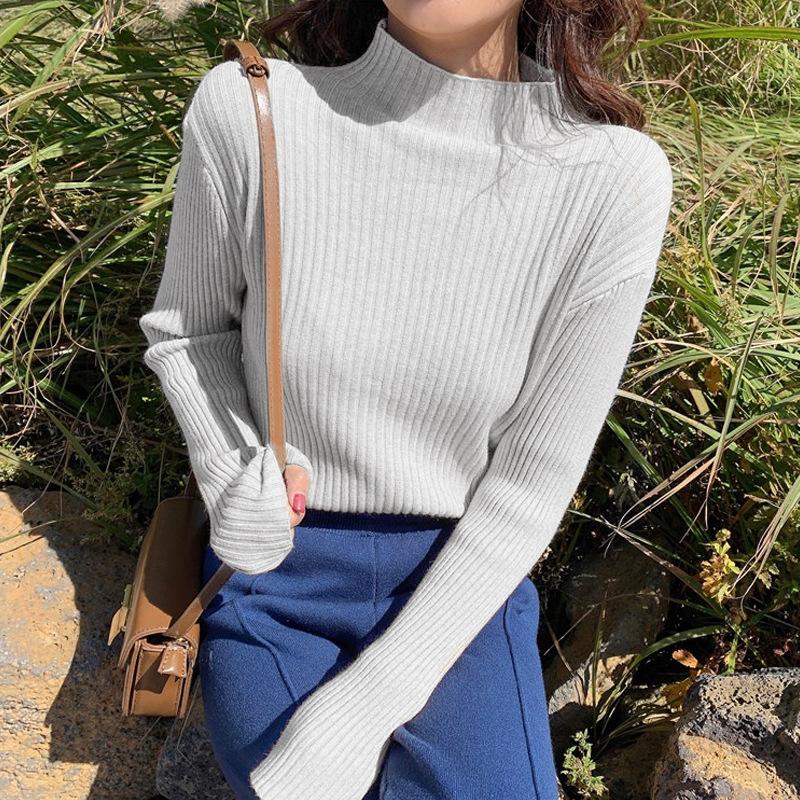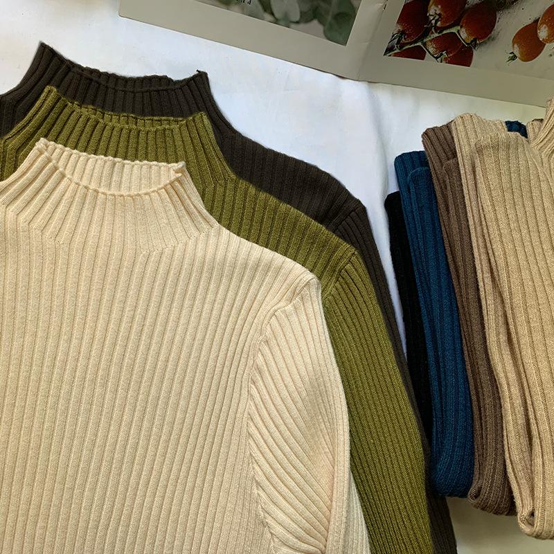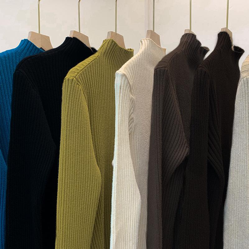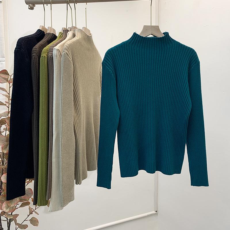 ハーフハイネックプルオーバー薄手インナーセーターニット純色カシミヤプルオーバーブラウス女 アンチピリング ステッチタートルニット春と秋冬の