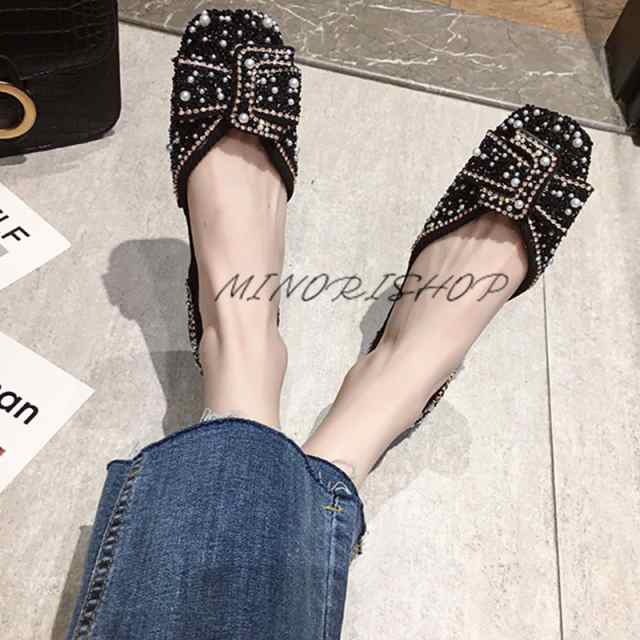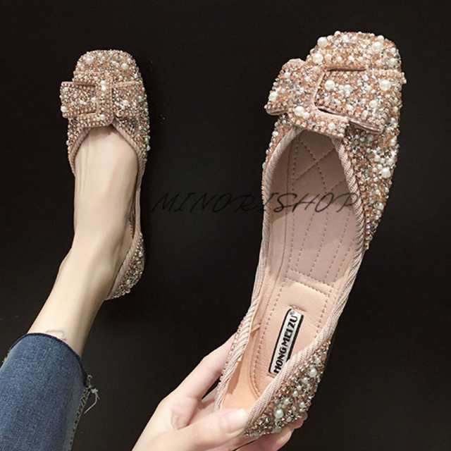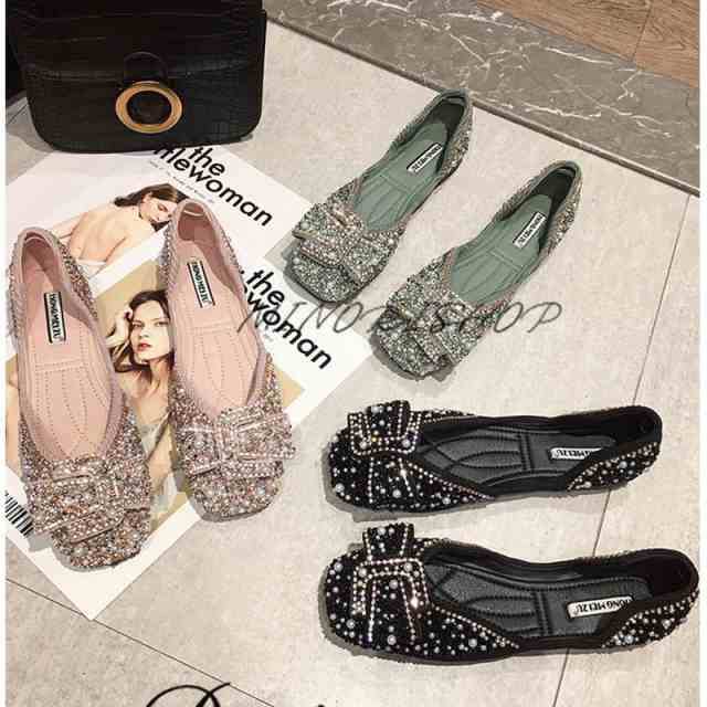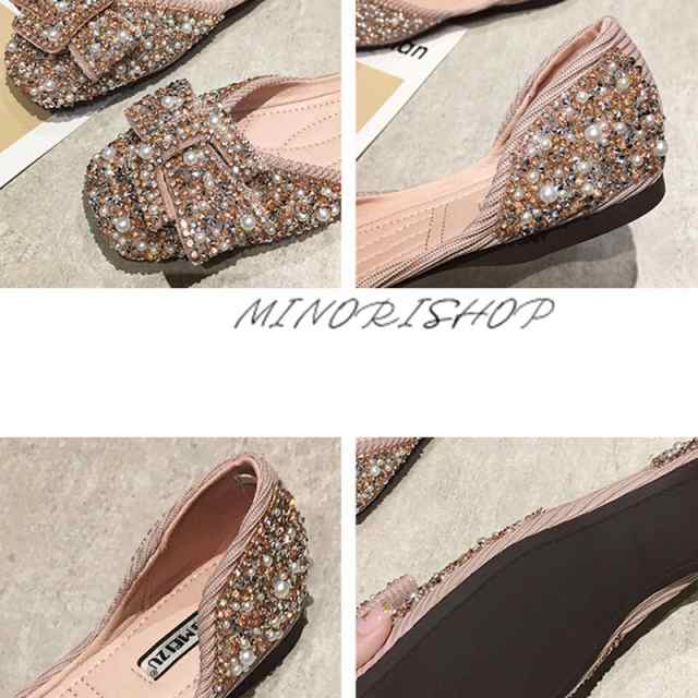 バブーシュ パンプス フラットレディース ローヒールパンプス キラキラ 歩きやすい らくちん バレエ軽量 痛くない