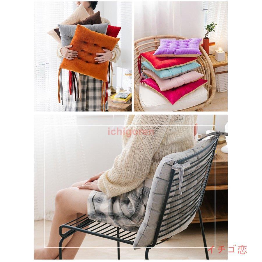 使いシーン 飽きのこない、シンプルな無地柄。紐付きでしっかり固定できる。ダイニングチェアや、ワークチェア、学習椅子におすすめ。座布団としても使える。いろんな場所で大活躍。