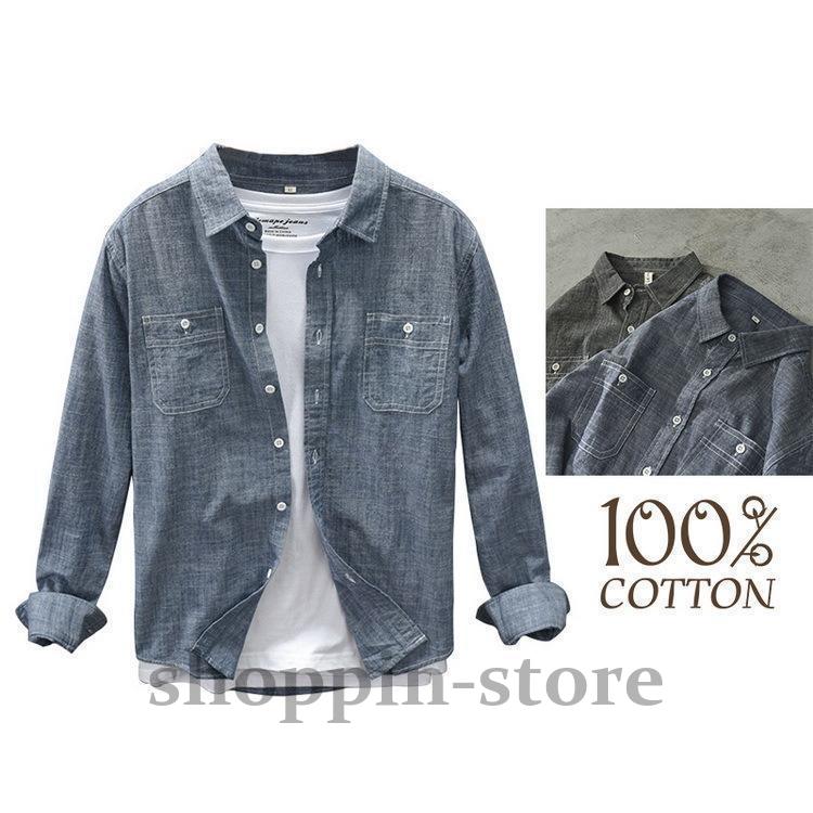 ダンガリーシャツ メンズ カジュアルシャツ 100%綿 シャツ トップス 春 きれいめ 長袖 春