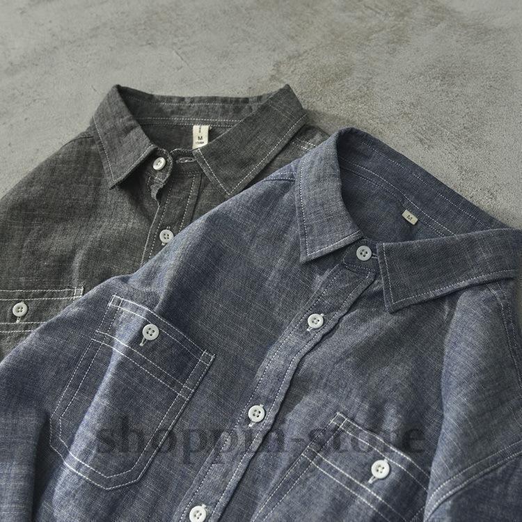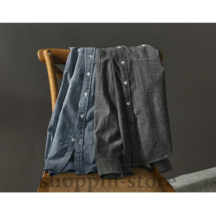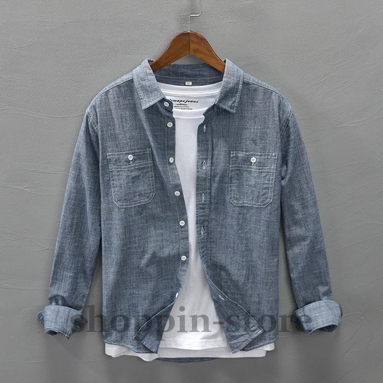 ダンガリーシャツ メンズ カジュアルシャツ 100%綿 シャツ トップス 長袖 きれいめ 春 秋