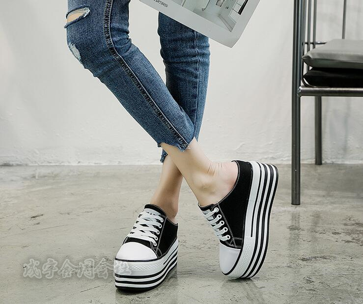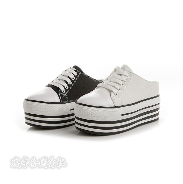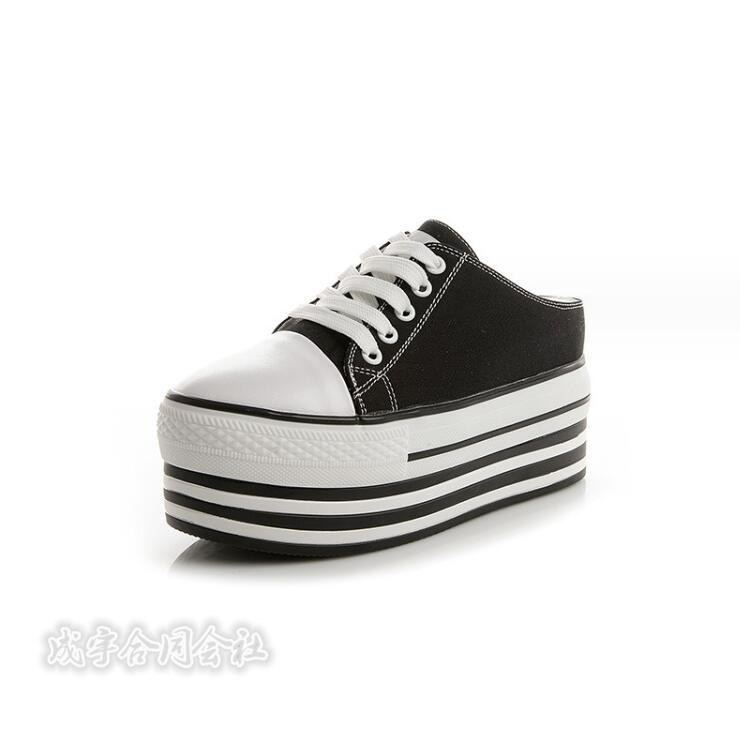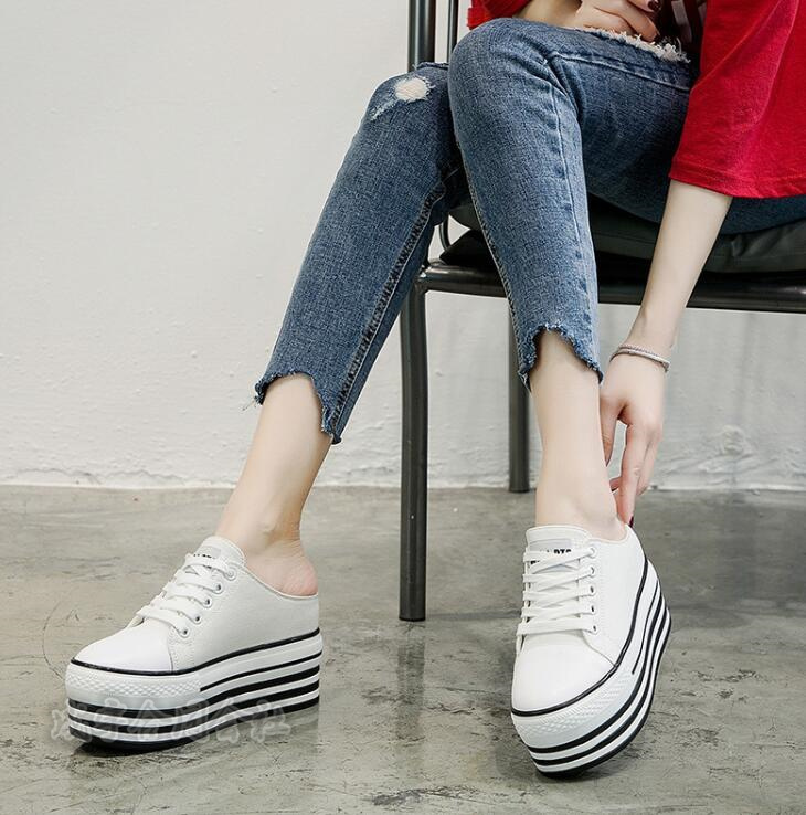 厚底靴 かかとなし スニーカー ミュール レディース レースアップ 美脚 厚底スニーカー 通気性