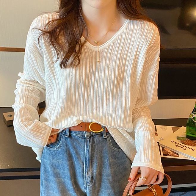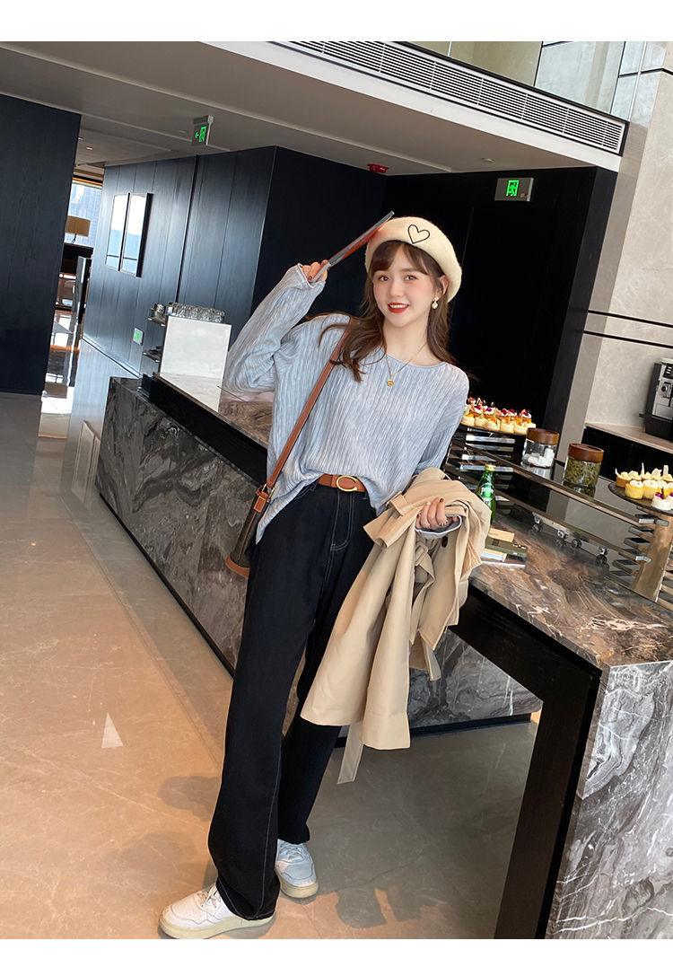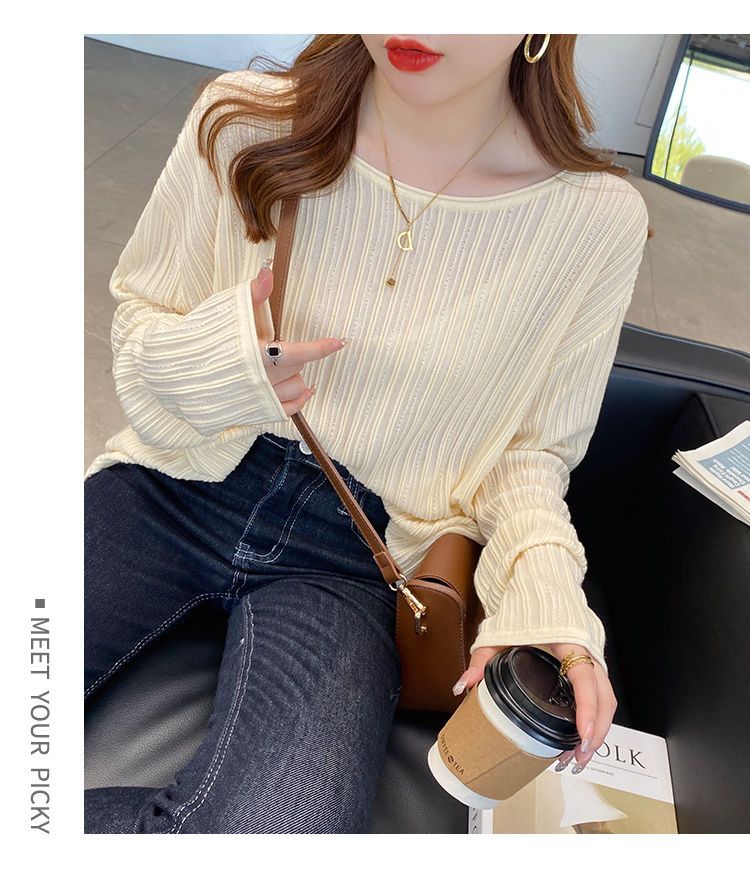 商品名:リブニット レディース 体型カバー トップス 長袖 薄手 ニットセーター 柔らか ゆったり 無地 お洒落 春秋 大きいサイズ キレイめ シンプル