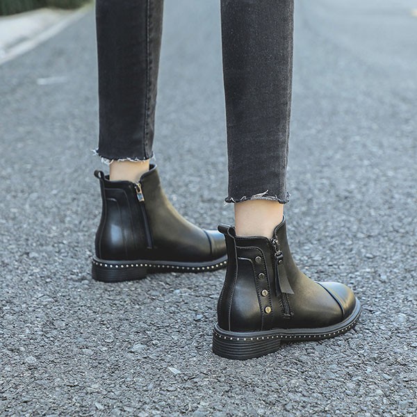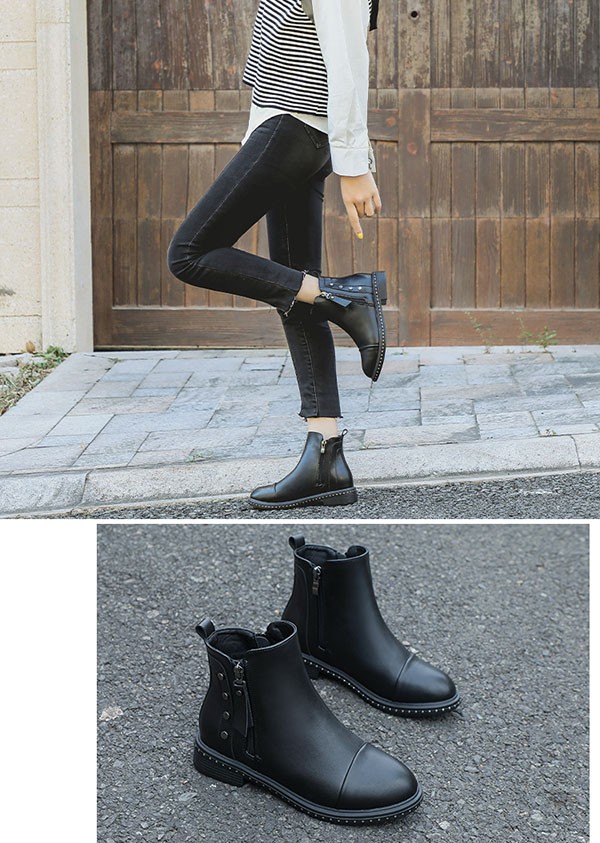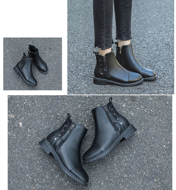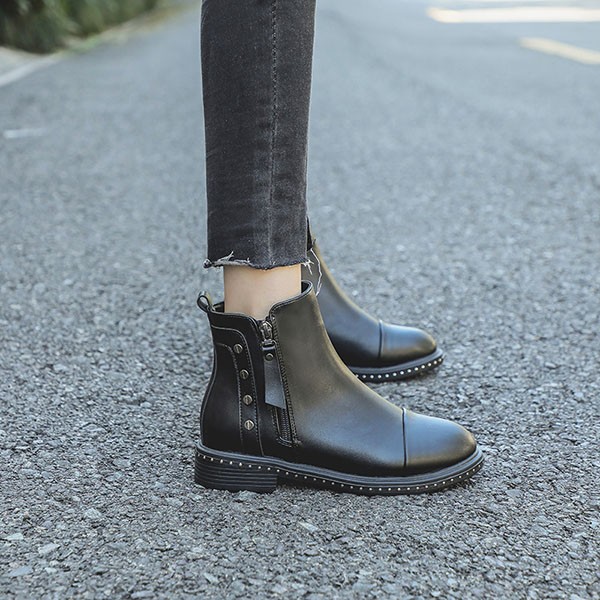 ショートブーツ レディース 歩きやすい 軽量 滑らない サイドジップ 痛くない 大きいサイズ 小さいサイズ カジュアル 防滑 スポーティ 防寒 黒S1ZB