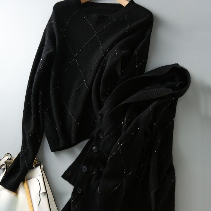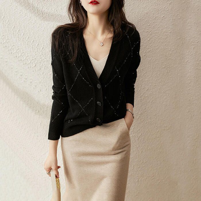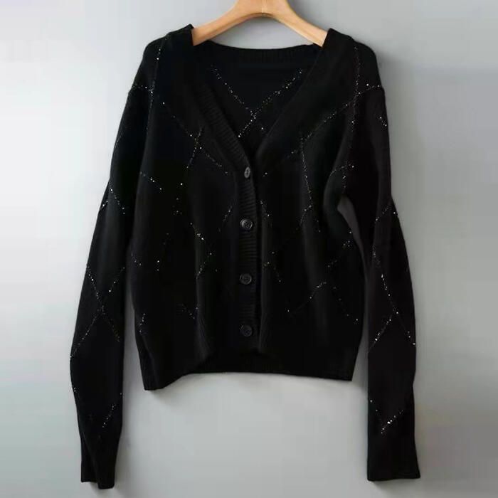 トップス ニット カーディガン セーター ダイヤ柄 クルーネック きれいめ 通勤 羽織 薄手アウター レディース ブラック おしゃれ 長袖 大人可愛い カジュアル