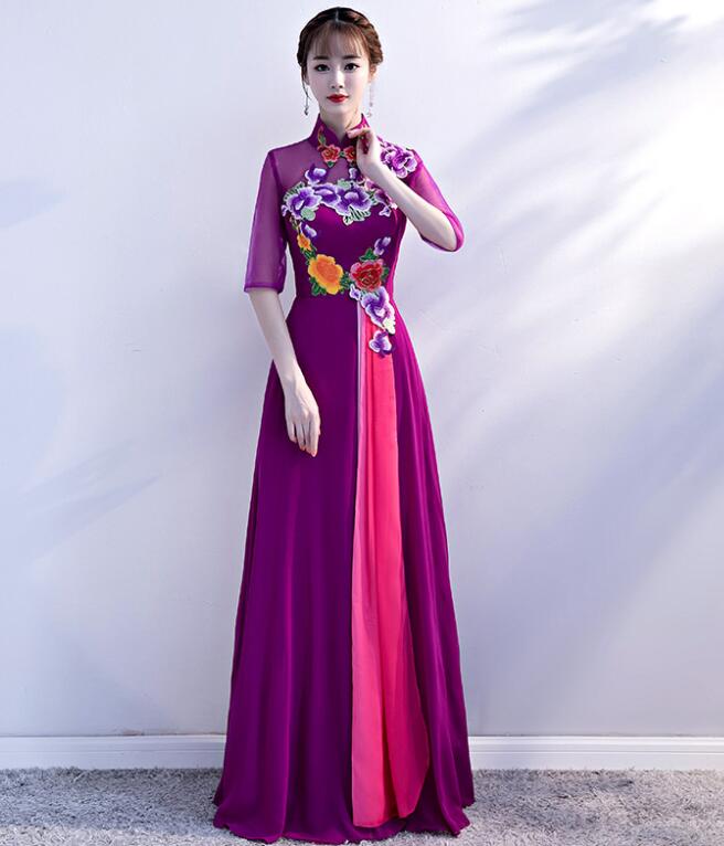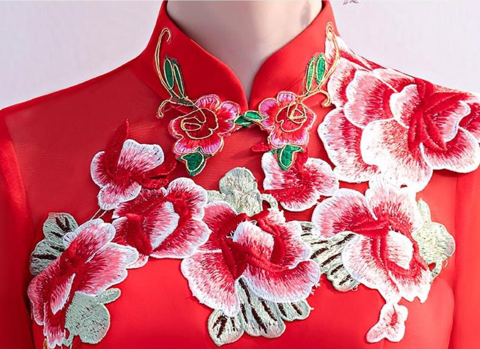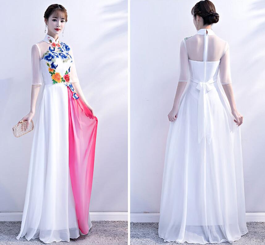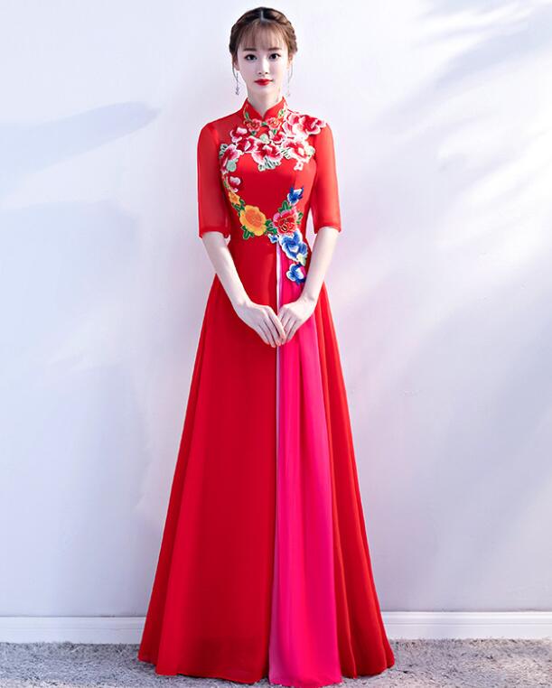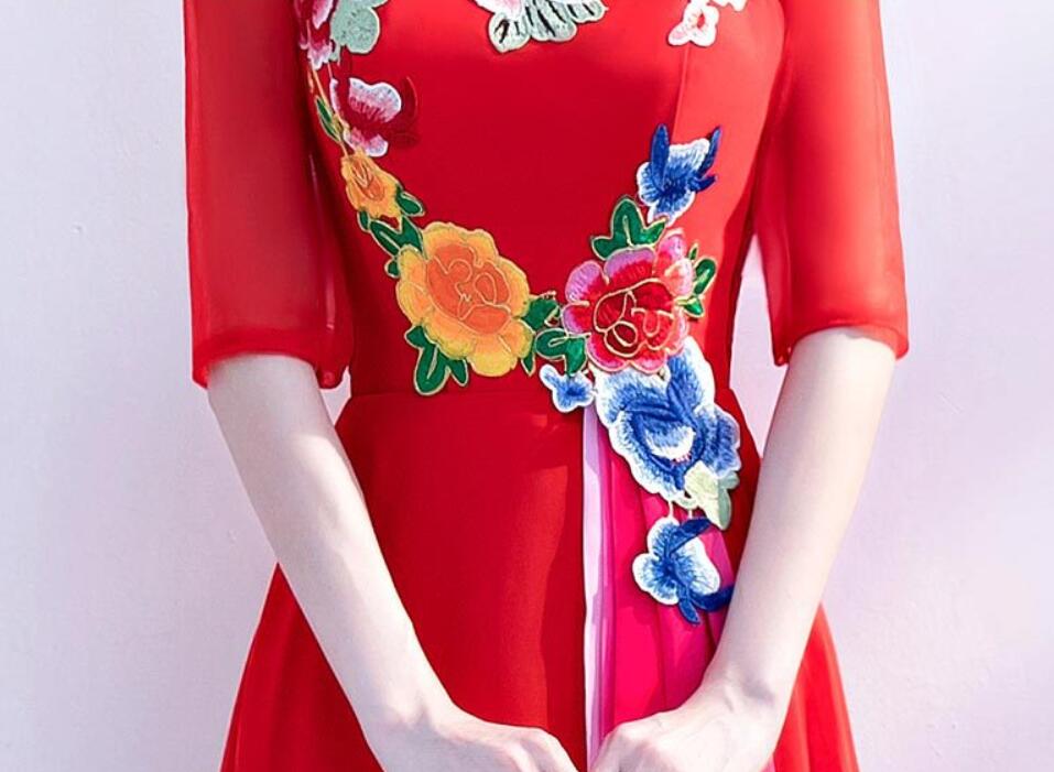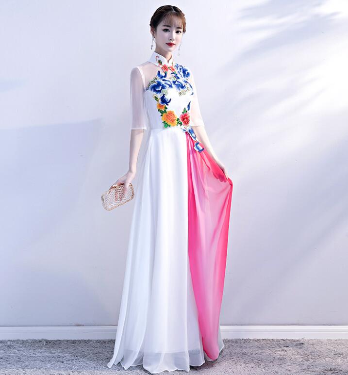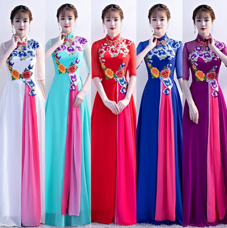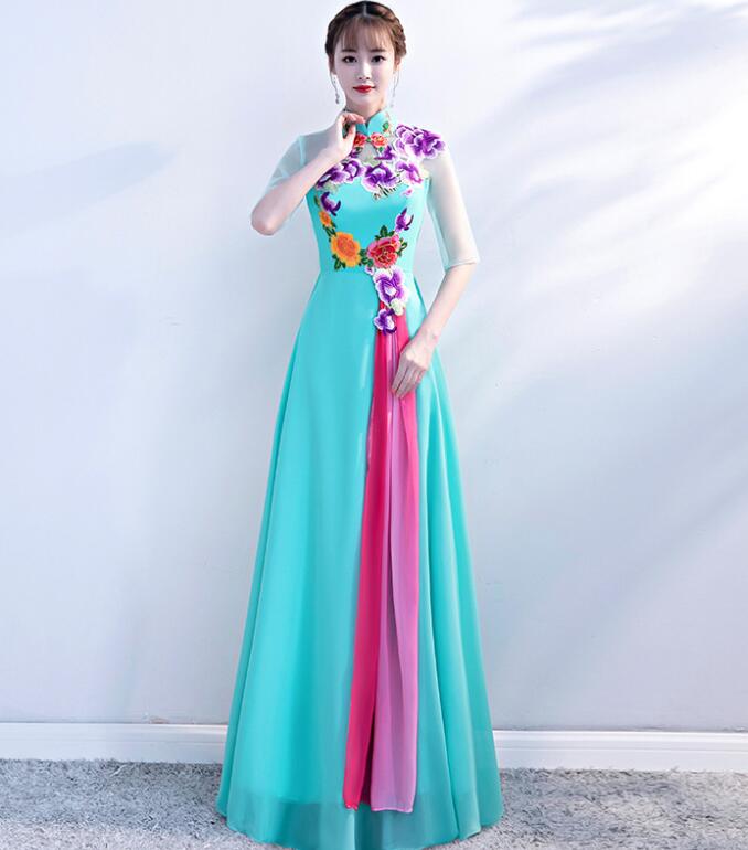 レディース パーティードレス ワンピース イブニングドレス エレ立ち襟 チャイナ風 忘年会二次会 フフォーマル 演奏会 披露宴 花柄 コンサート