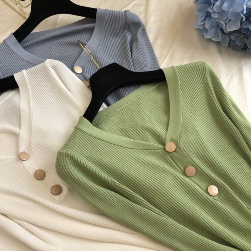 リブニット レディース Vネック 長袖 セーター 秋 大 仕事 ニットソー きれいめ カットソー オフィス ニット 冬 インナー トップス 会社 薄手