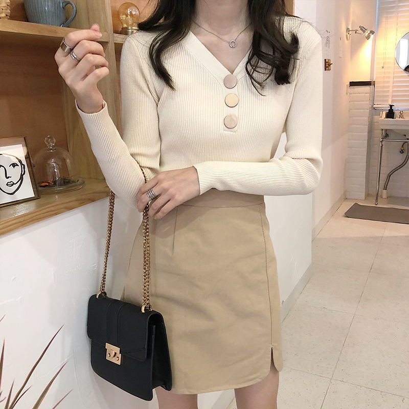 商品名:リブニット レディース Vネック 長袖 セーター 秋 冬 ニット トップス きれいめ 薄手 ニットソー カットソー インナー 会社 仕事 オフィス 大人 20代 30代 40代 OL ママ 母
