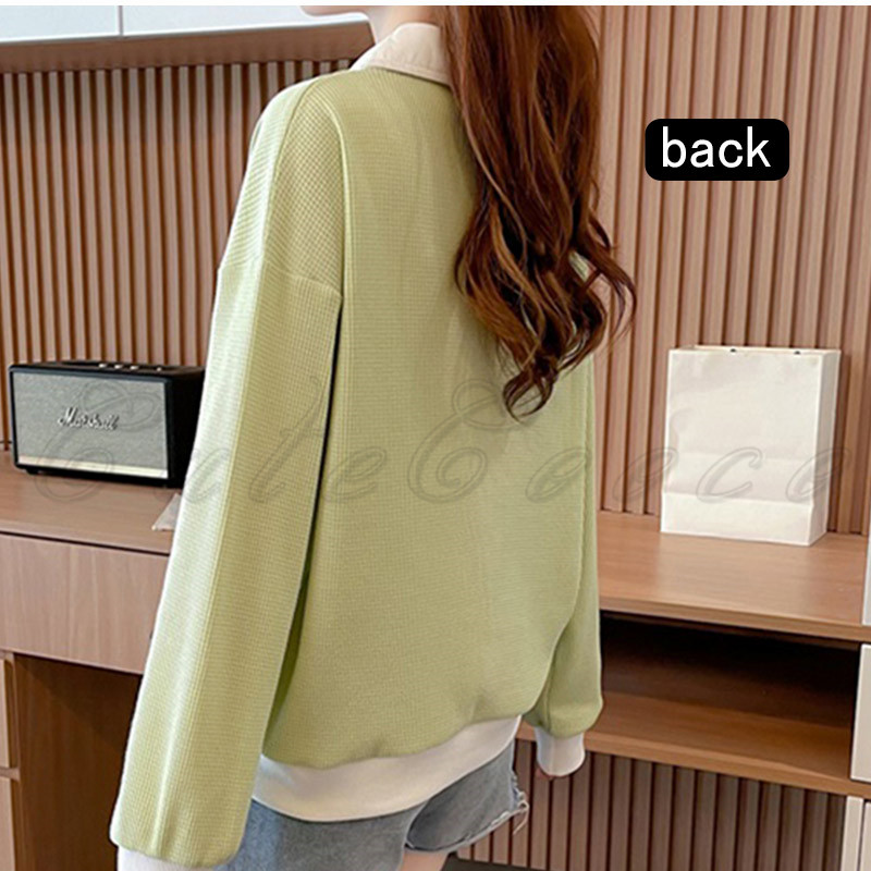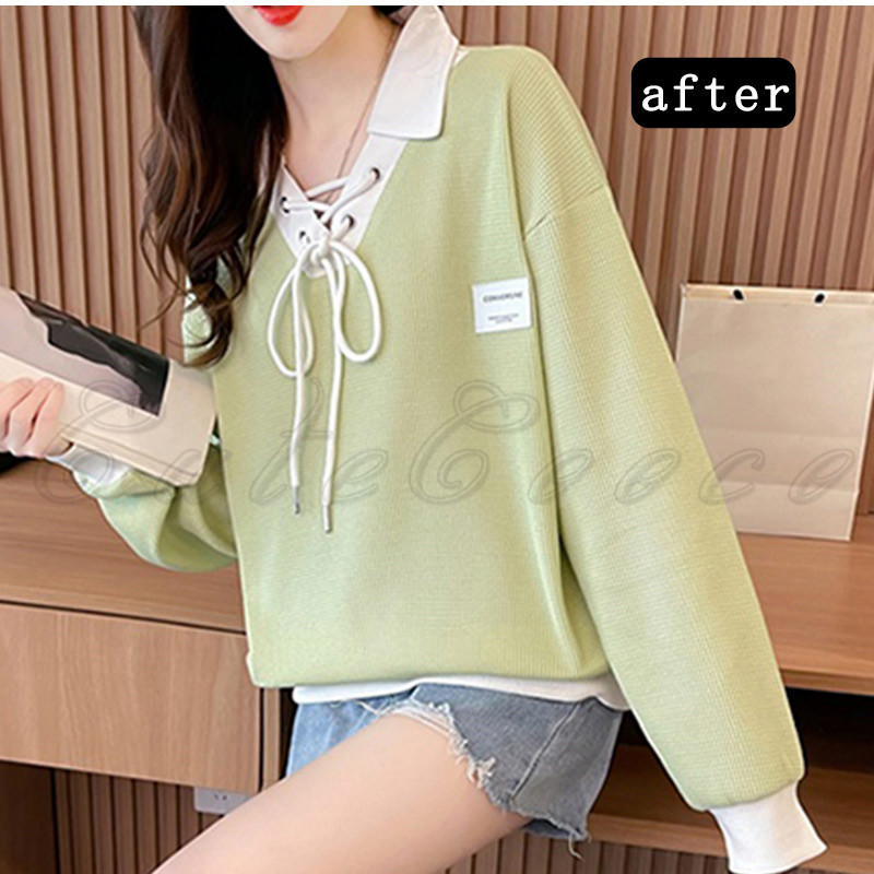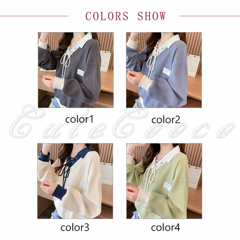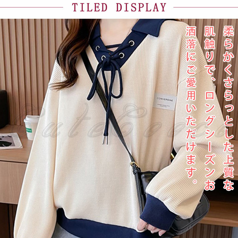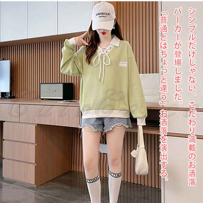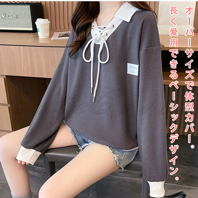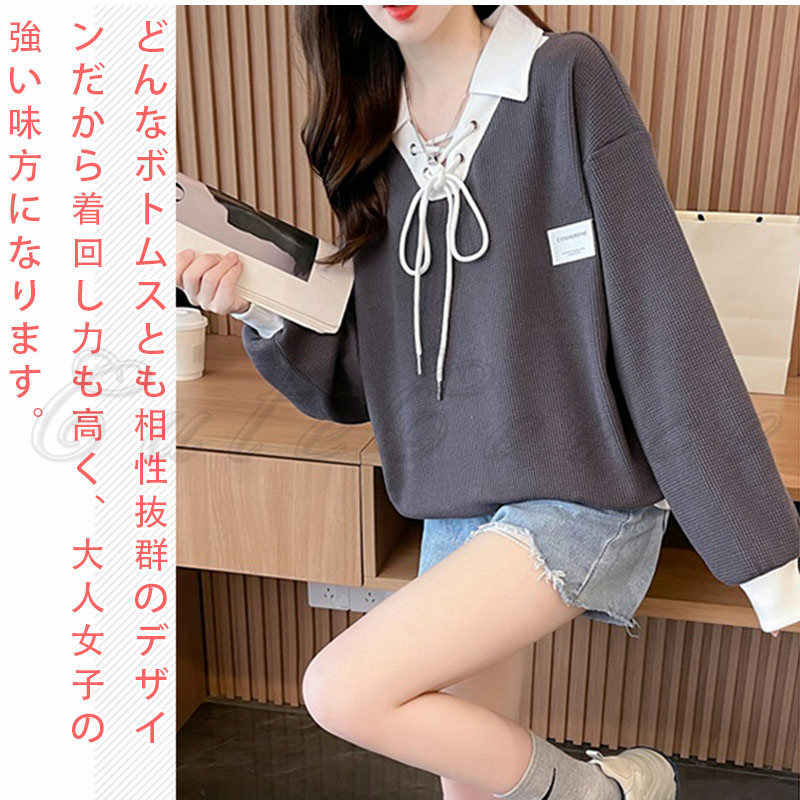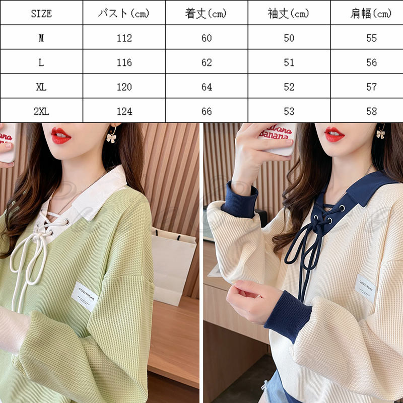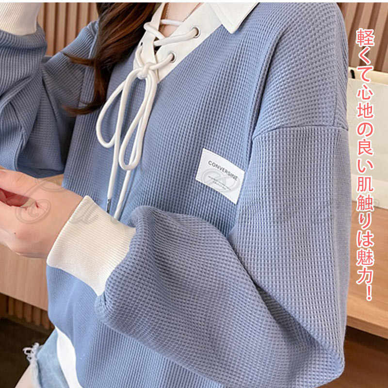 ポロ襟 スウェット レディース 切り替え トレーナー 配色 ルーズフィット プルオーバー 冬 ゆったり ボリューム袖 送料無料 おしゃれ 春 トップス 長袖 秋