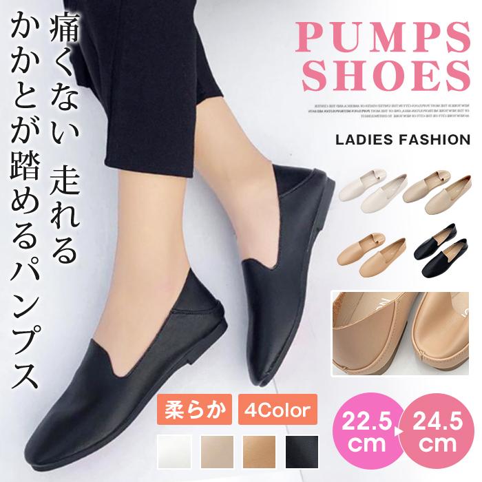 パンプス かかとが踏める ぺたんこ スリッポン バレエシューズ 柔らか レディース ローヒール 履きやすい 痛くない 走れるパンプス