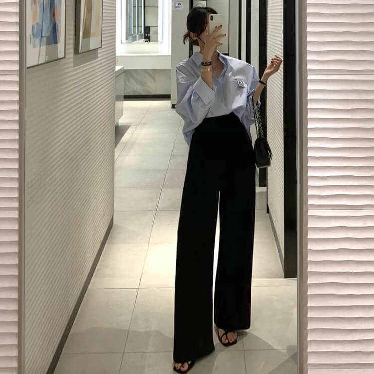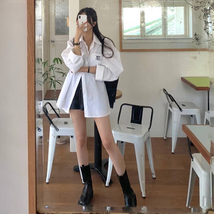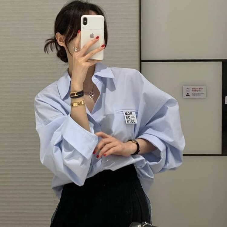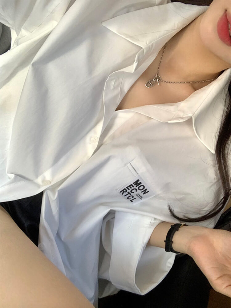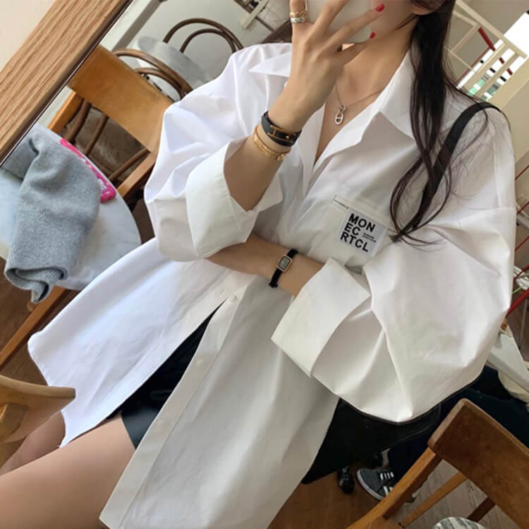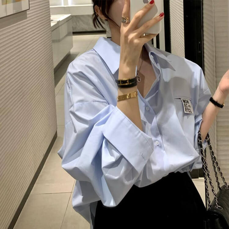 韓国デザインのルーズスタイリッシュなオープンカラーシャツ。