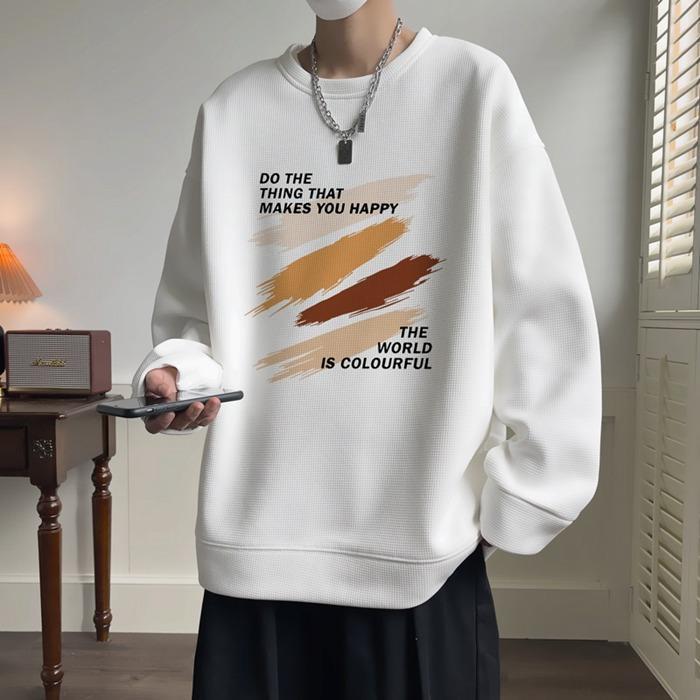 トレーナー Tシャツ メンズ 長袖Tシャツ ワッフル生地 クルーネック 長袖 トップス ロゴ カジュアル おしゃれ 春 秋 通学 ファッション