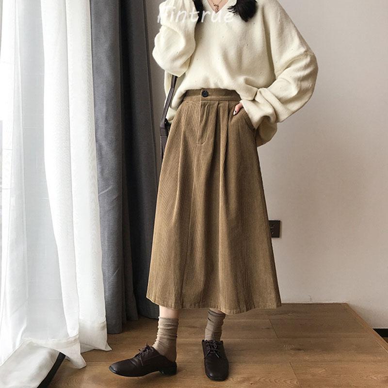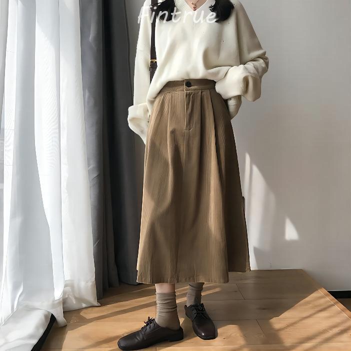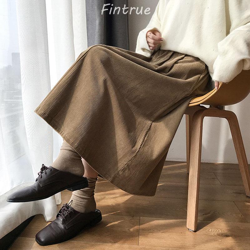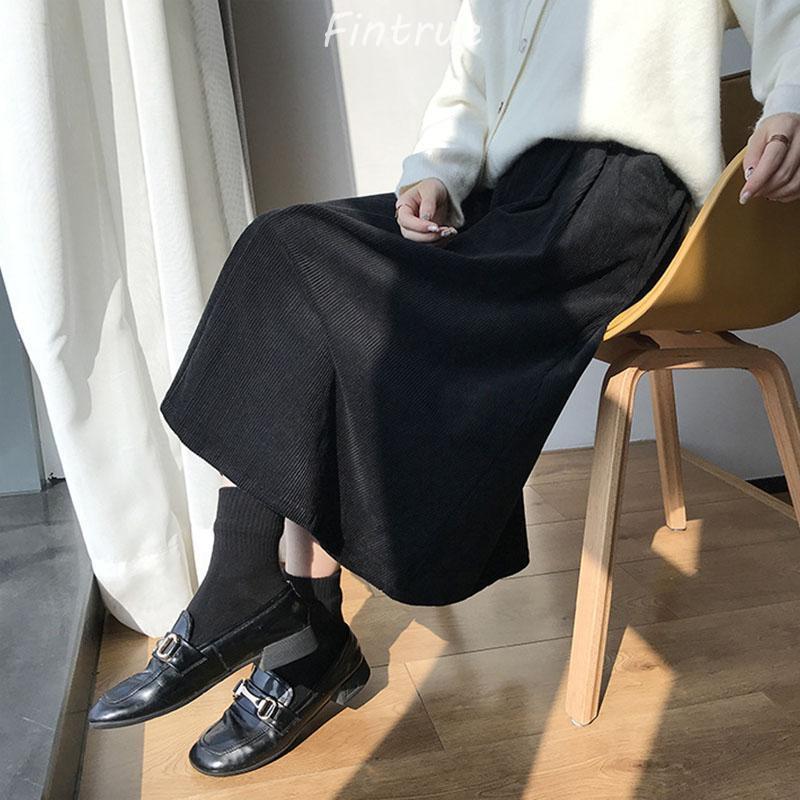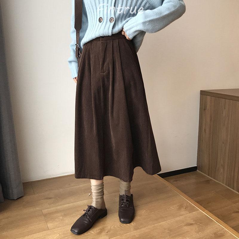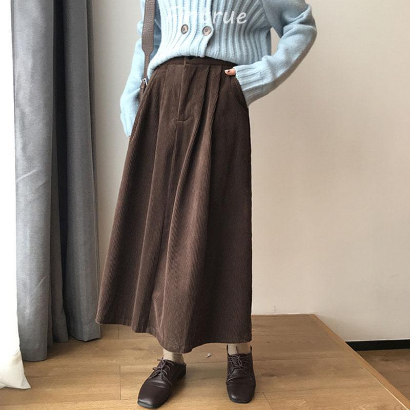 スカート ロング丈 レディース 40代 秋冬 コーデュロイスカート 大人 ハイウェストボトムスオシャレ Aラインスカートミディアム丈 フレアスカート 着痩せ 黒