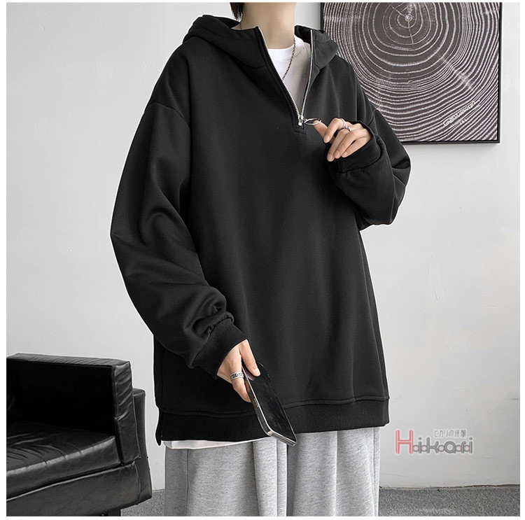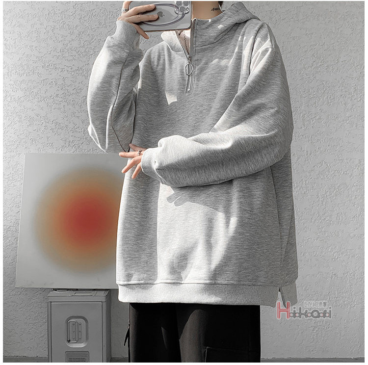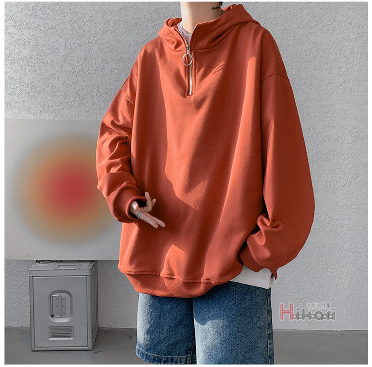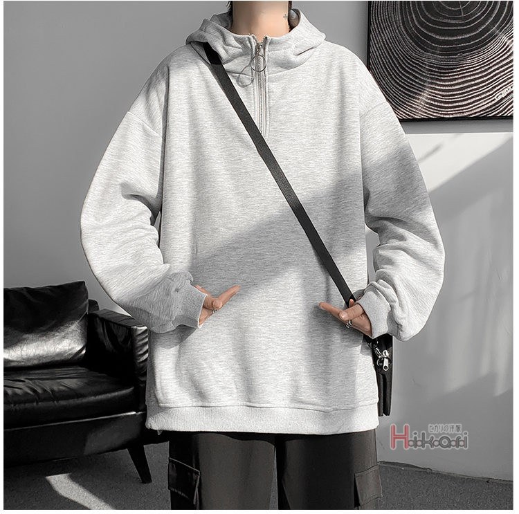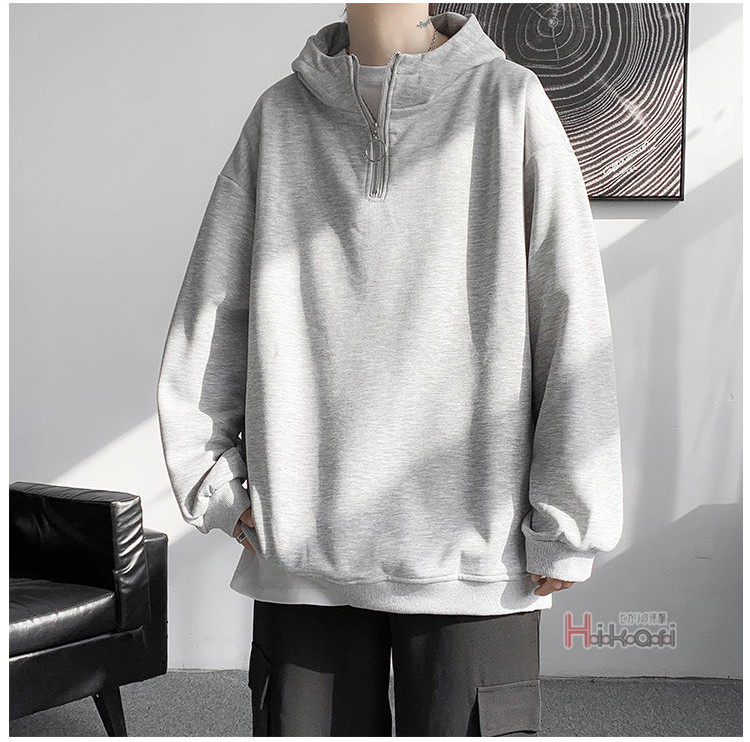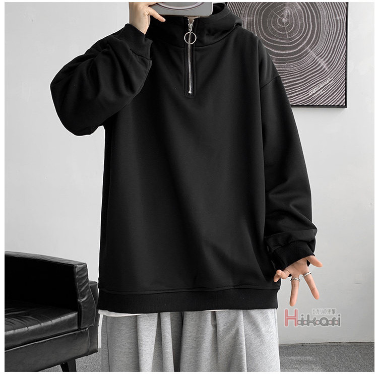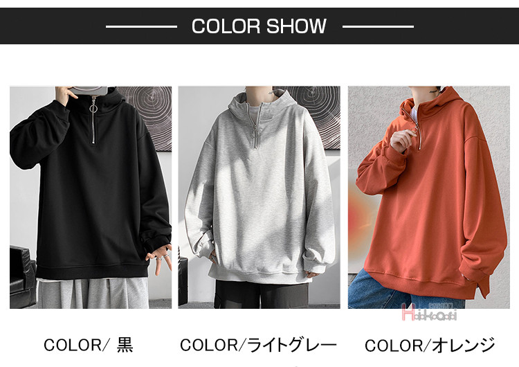 ハーフジップ メンズ 長袖 ハイネック プルオーバー無地 スウェットトップス ハイネック フーディー