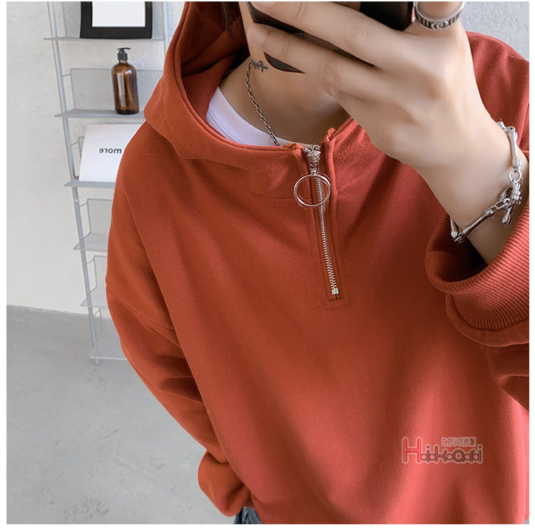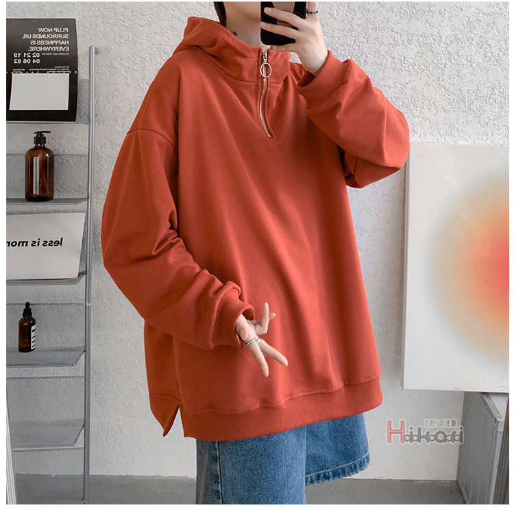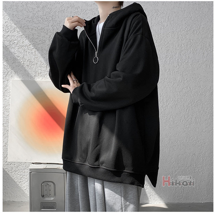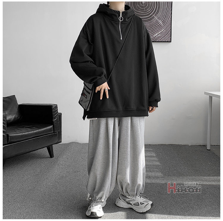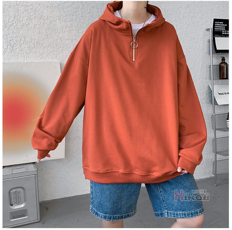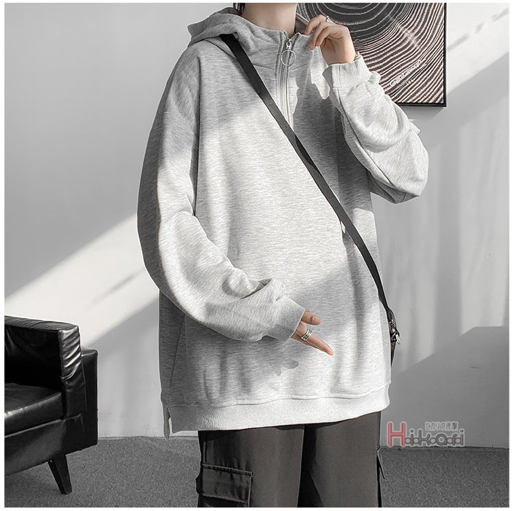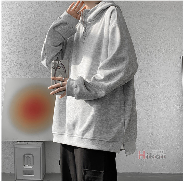 ハーフジップ メンズ 長袖 ハイネック プルオーバー無地 スウェットトップス ハイネック フーディー
