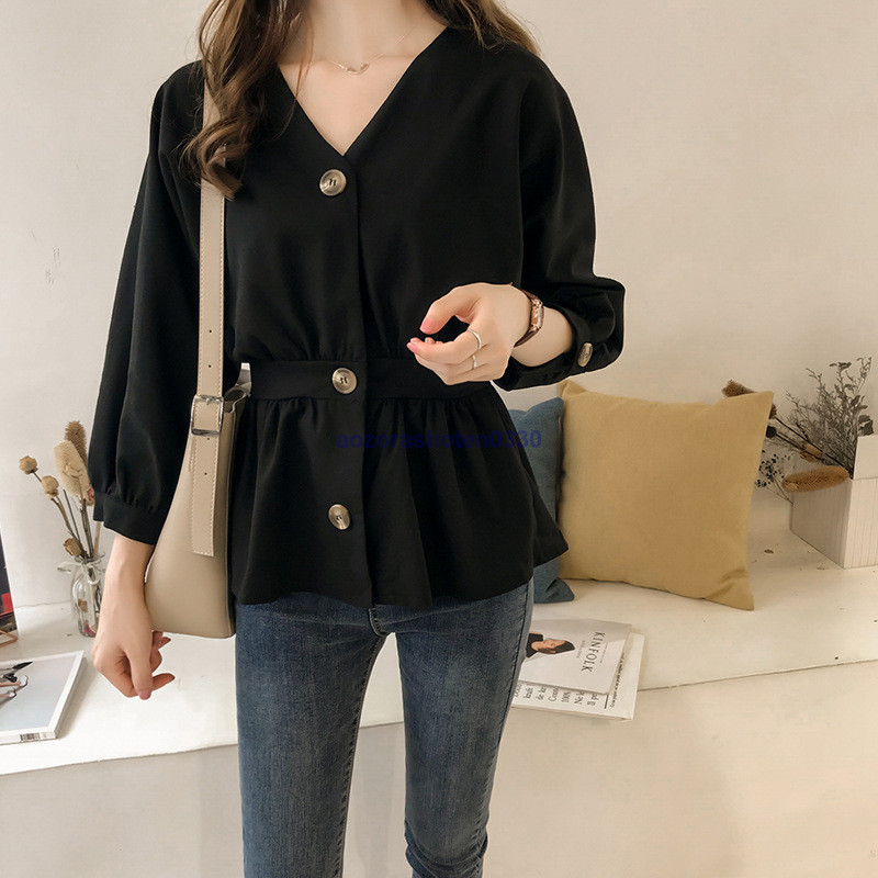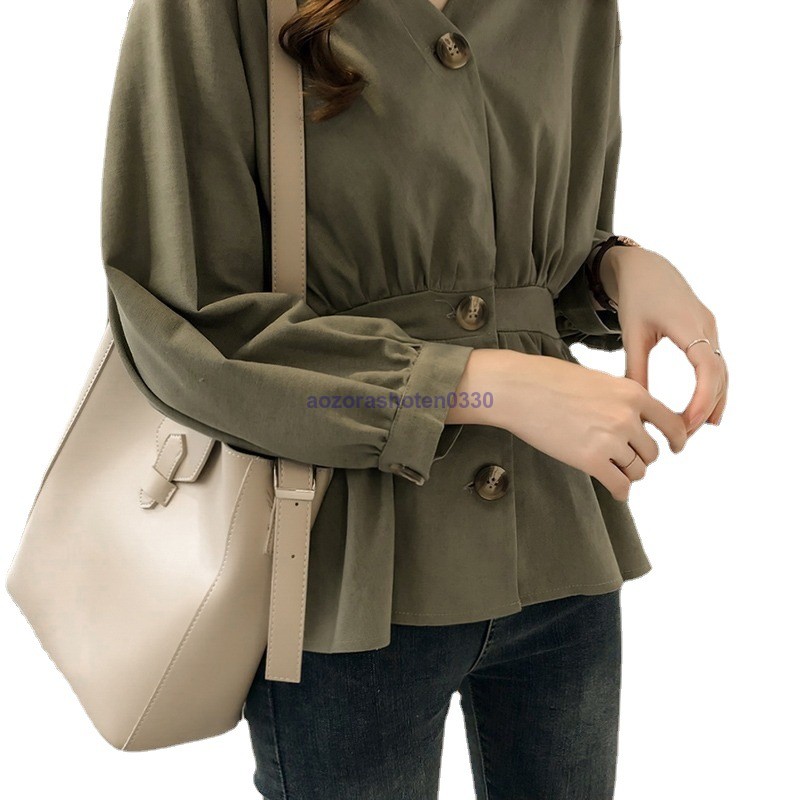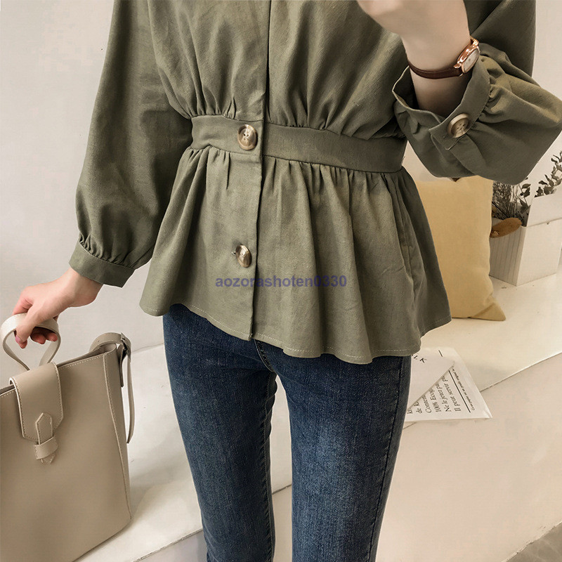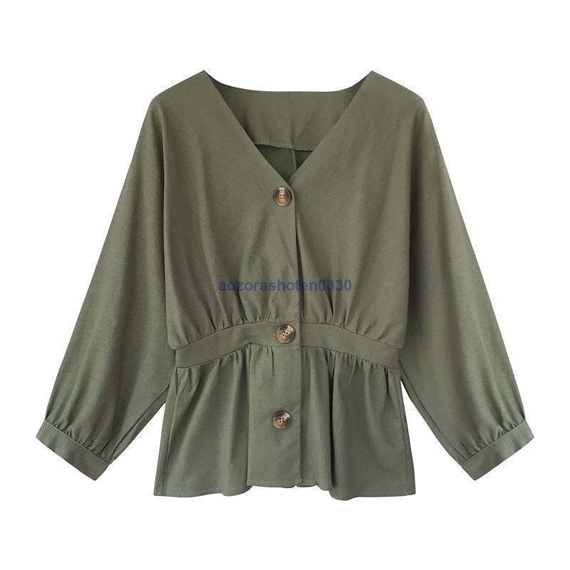 ブラウス Vネック 長袖 秋服 ボタン フゆったり カジュアル きれいめ 無地 着やせ おしゃれ プリーツ オシャレ