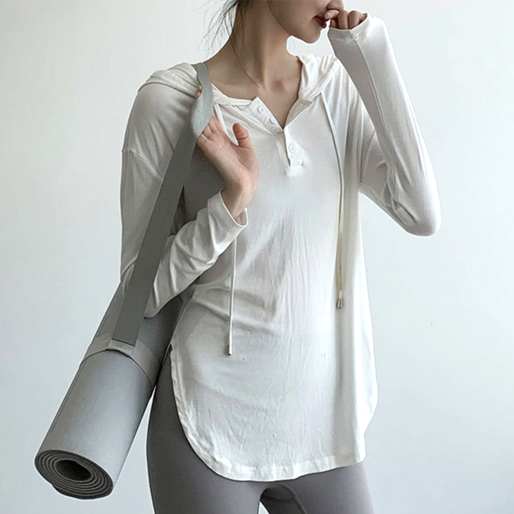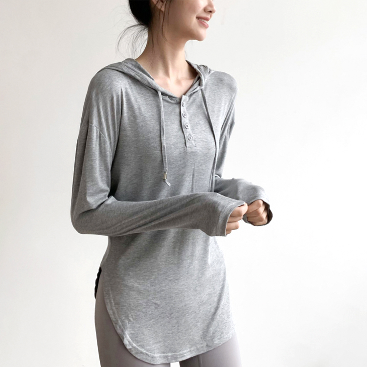 スポーツウェア レディース Tシャツ 長袖 ロンT フード付き ジム ゆったり 無地 フィットネス 薄手 長め ヨガ フーディー ロング丈 スポーツ