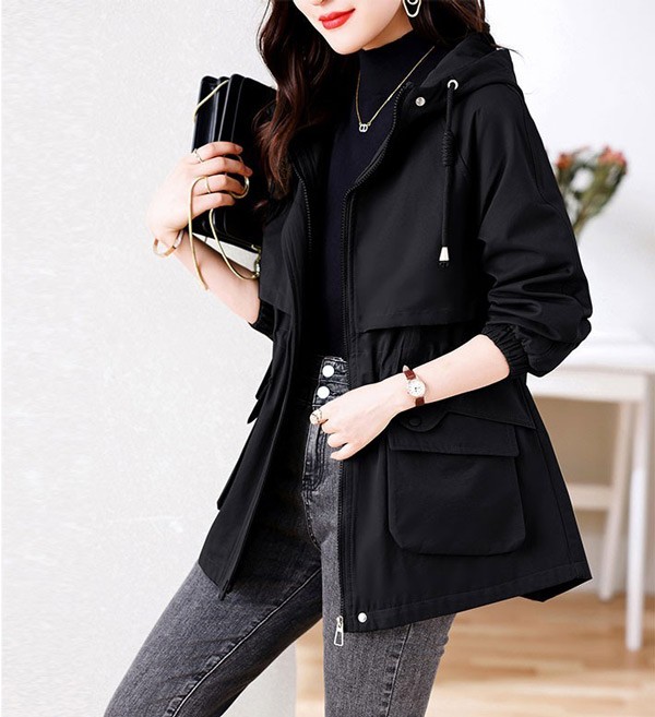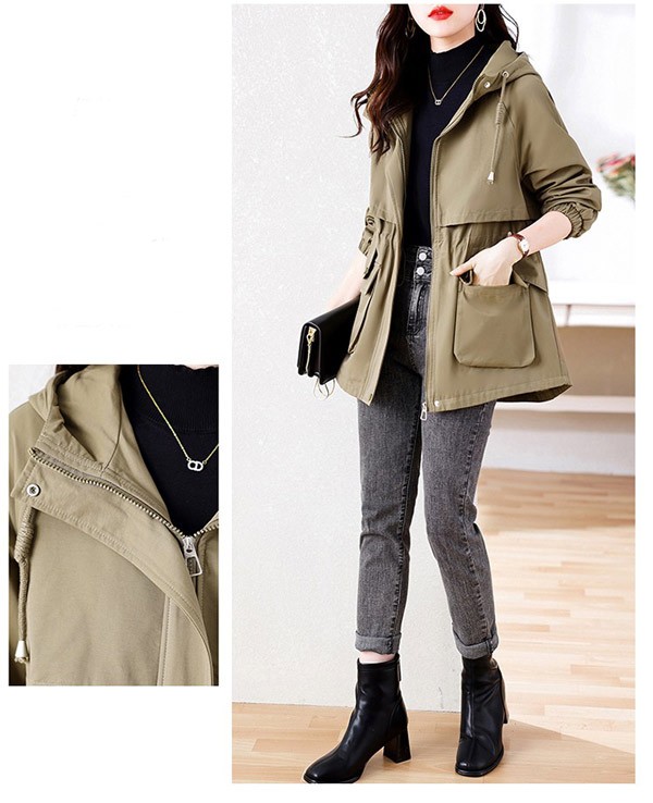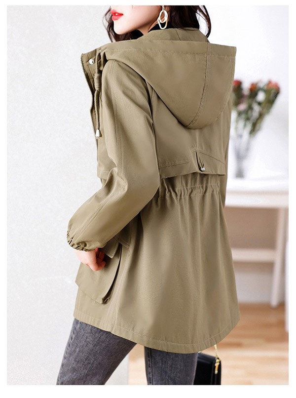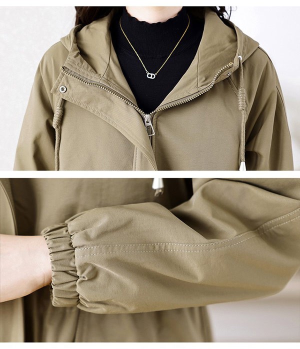 レディース コート 春アウター スプリングコート トレンチコート ミディアム丈 ジャケット レディース ウォッシュコットン フード付き ジャケット テロンチ 秋 ゆるコート 韓国風 シンプル ゆったり 無地 軽量 通勤 カジュアル 裏地あり ライナー付き M3ZB