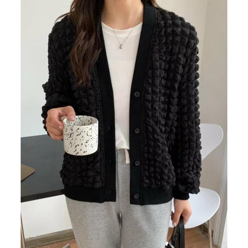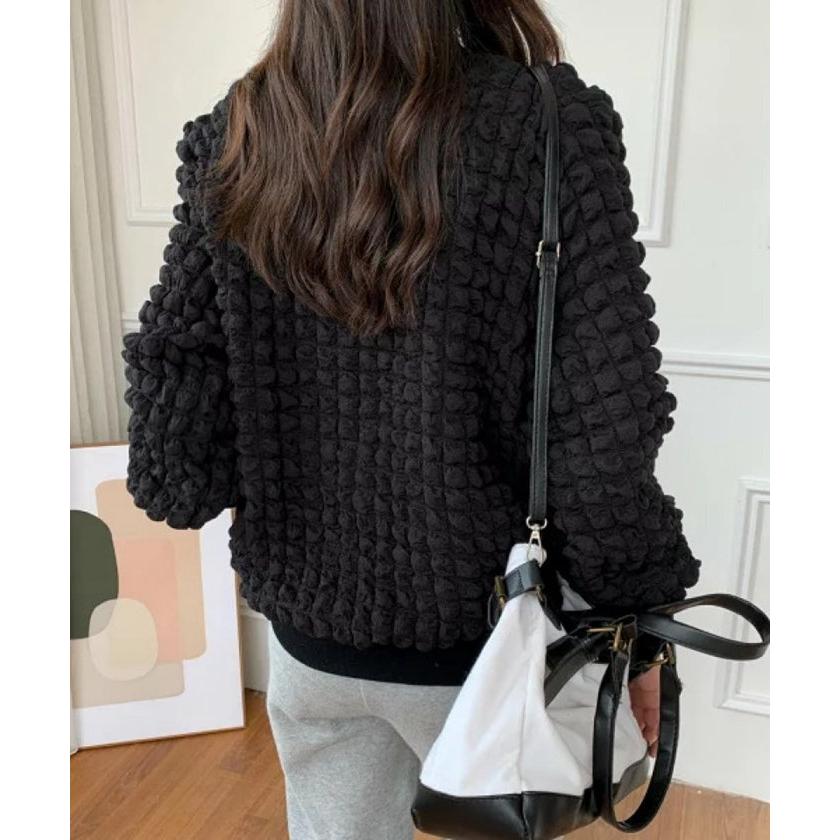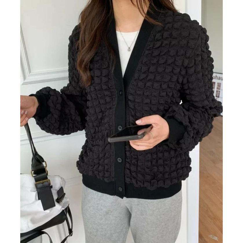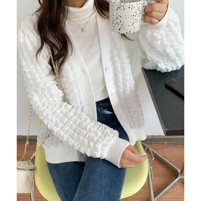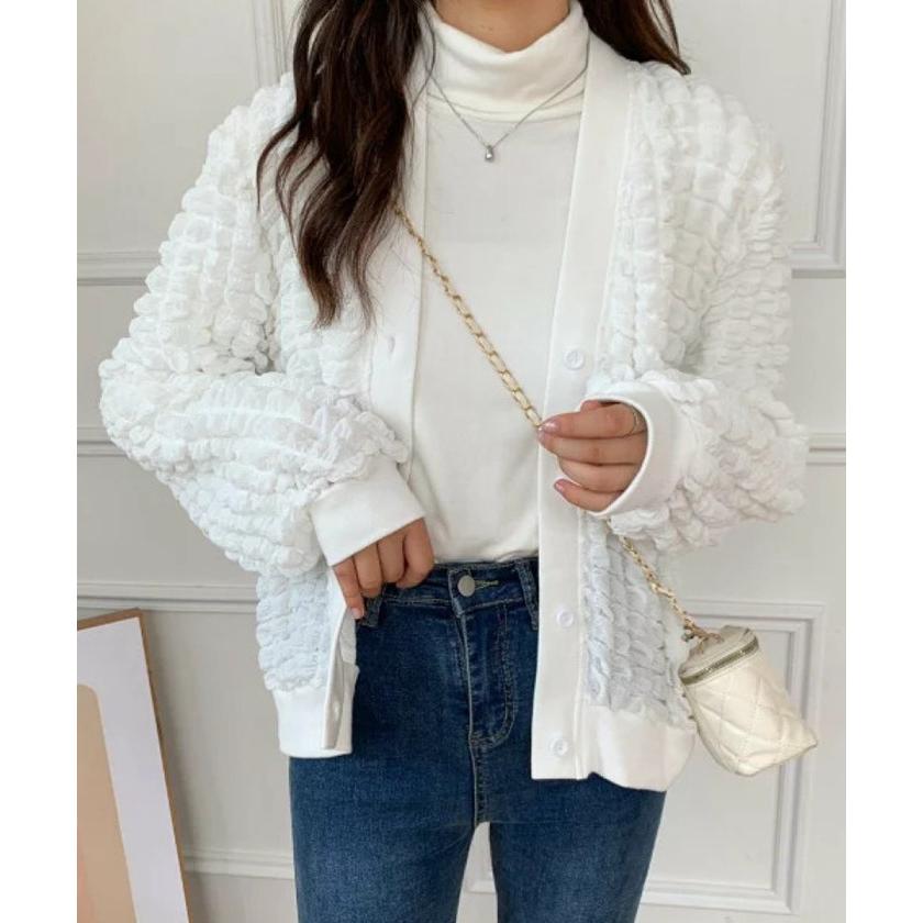 ジャケット レディース Vネック コート アウター ショート丈 ゆったり ぽこぽこ シャーリング カジュア