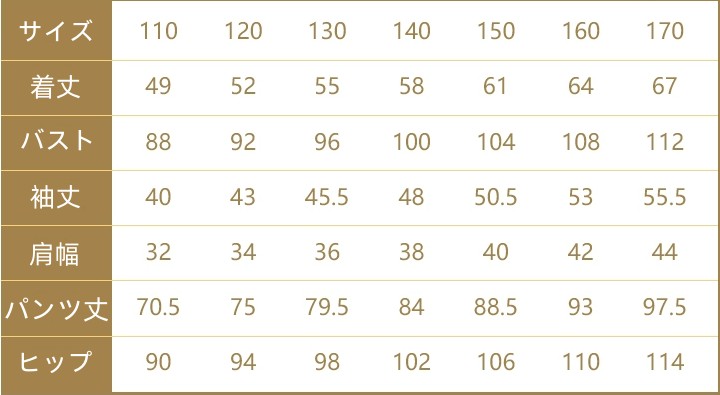 サイズ 110CM 120CM 130CM 140CM 150CM 160CM 170CM 180CM
