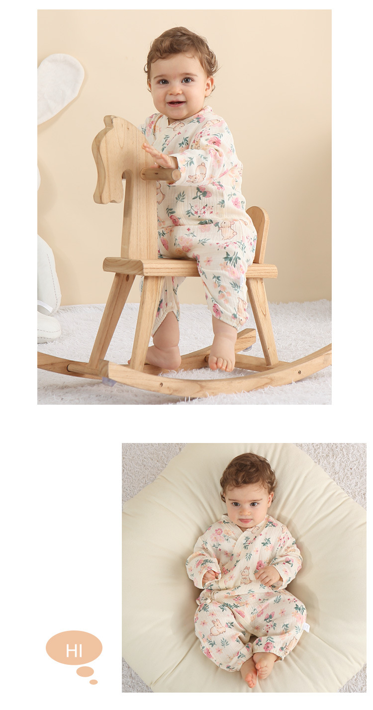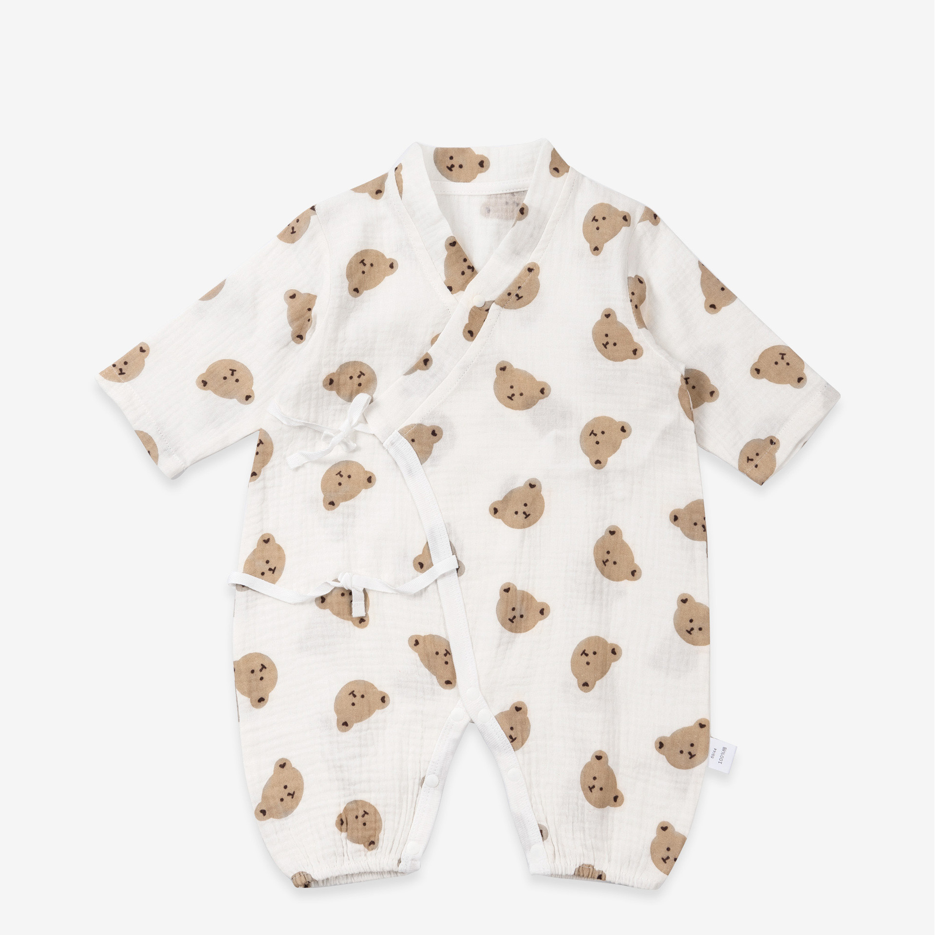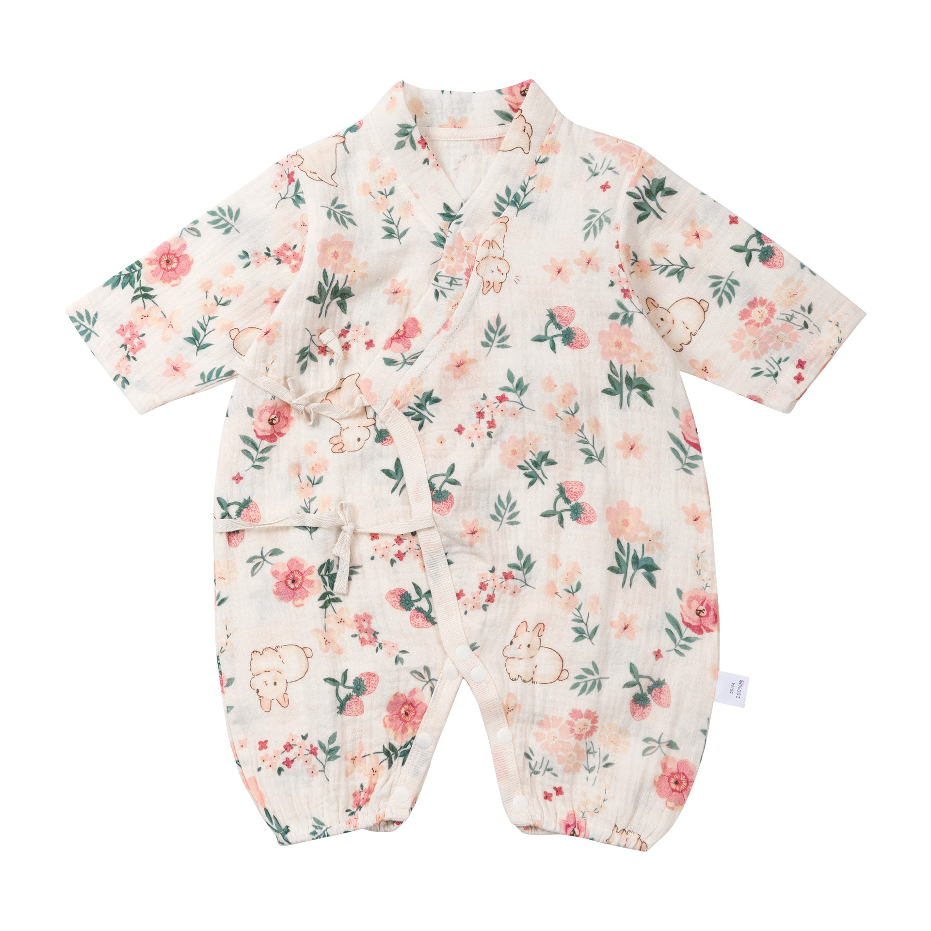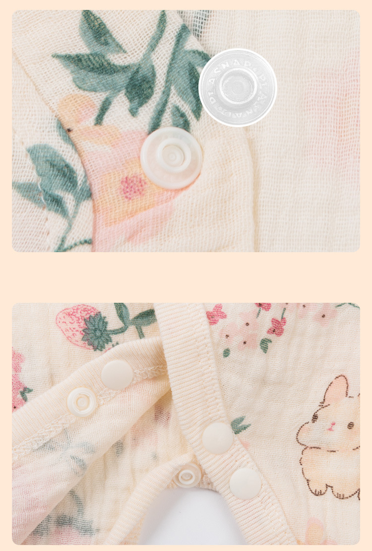・ロンパースの股部分はスナップボタン付きだからおむつ替えも簡単にできます。
