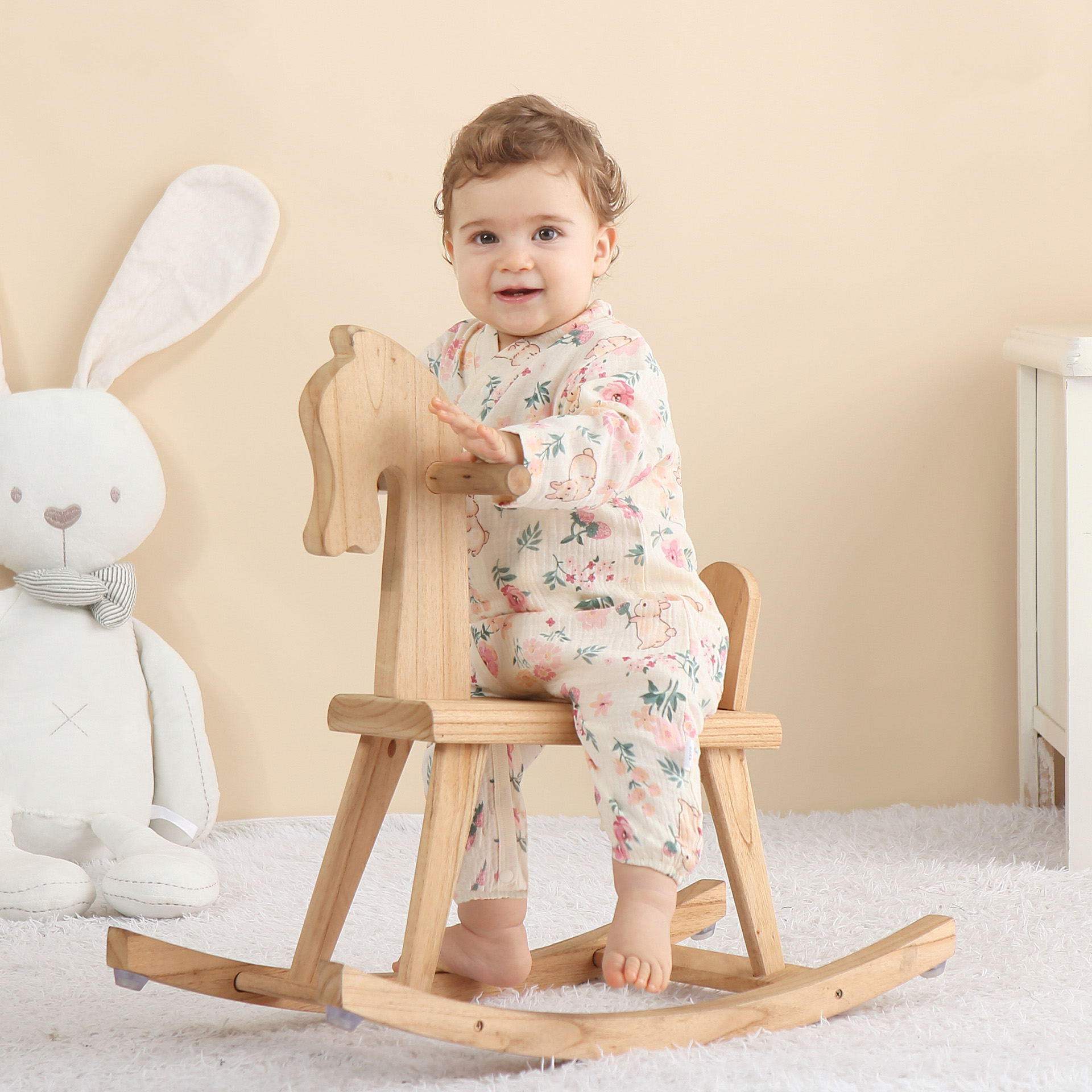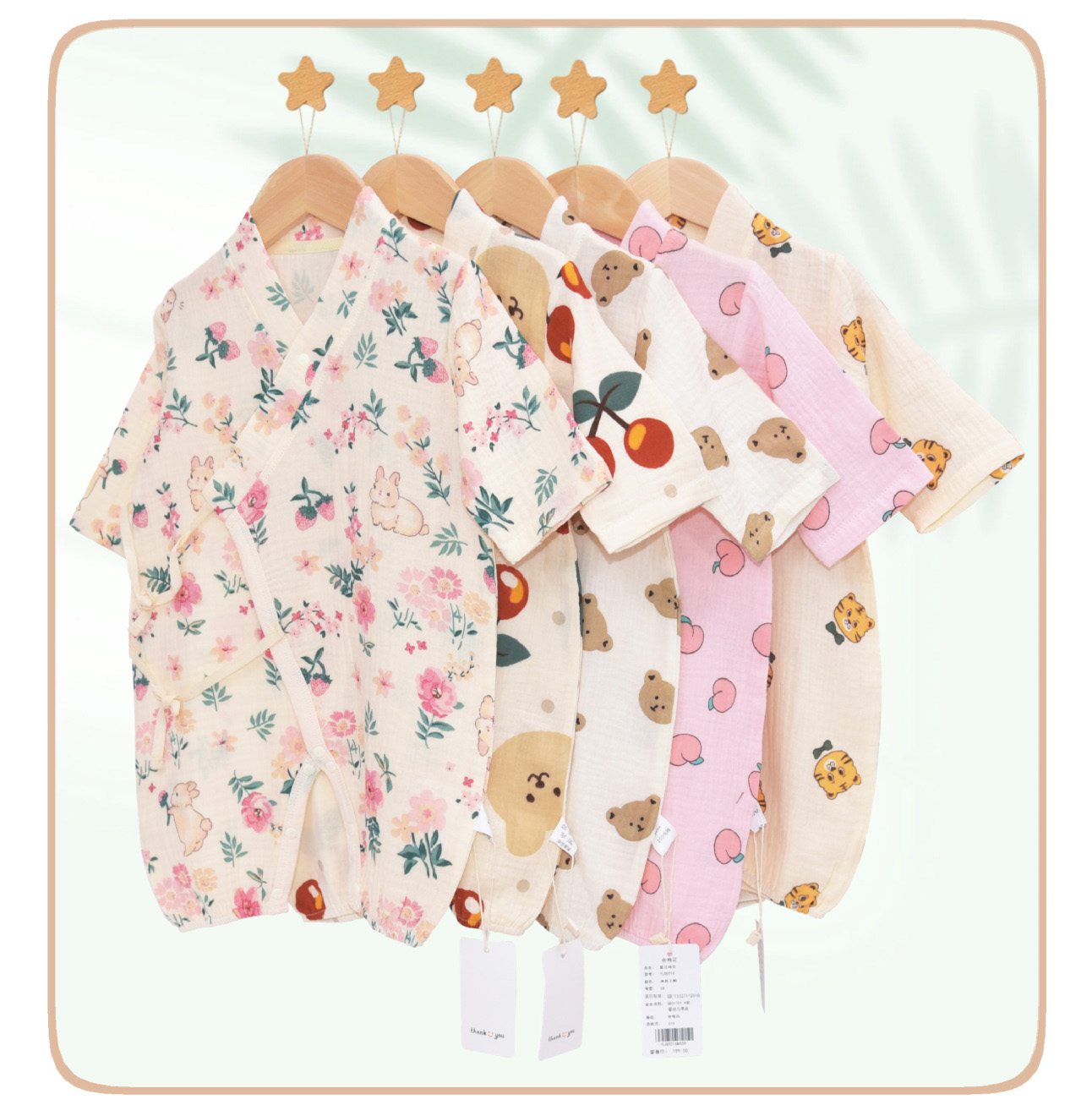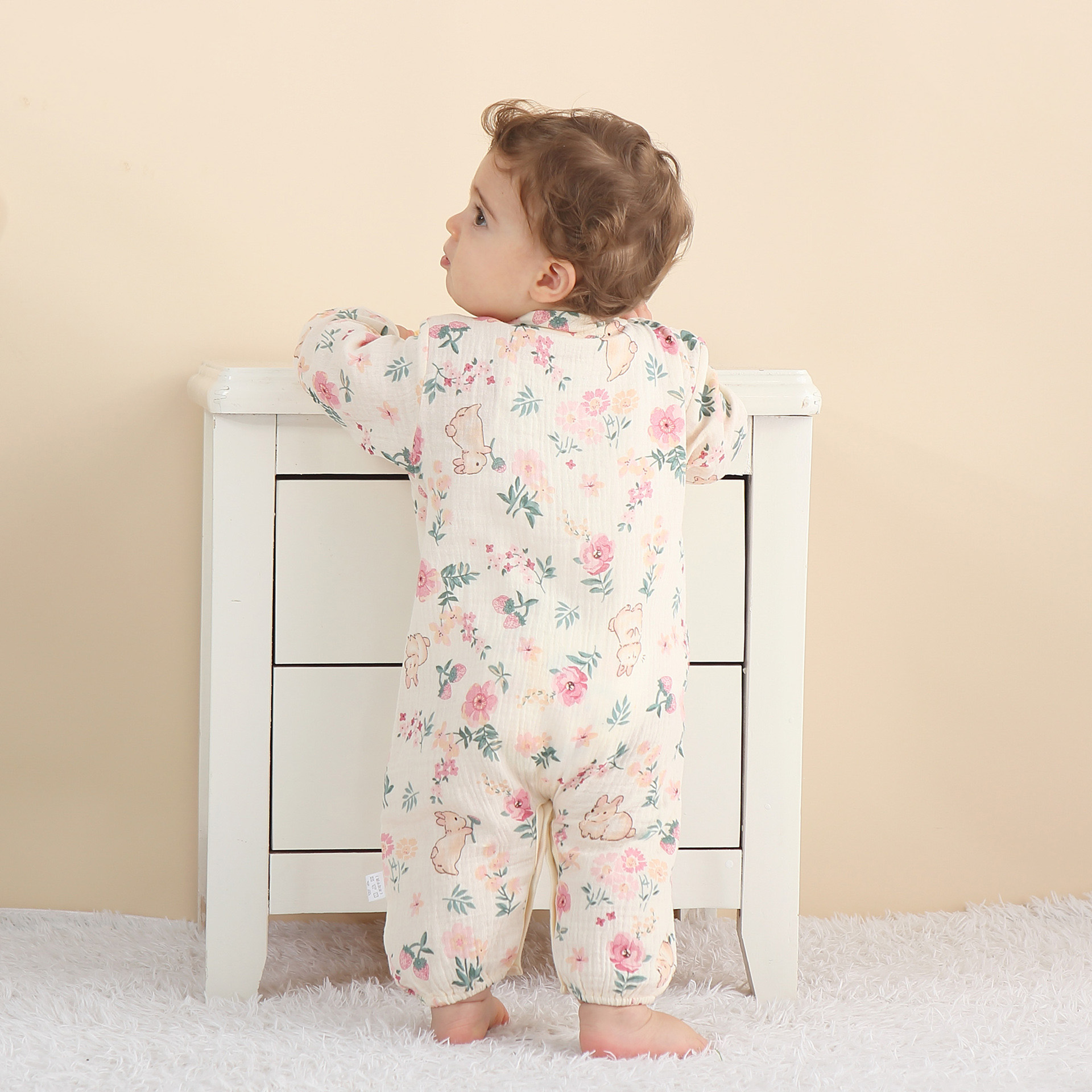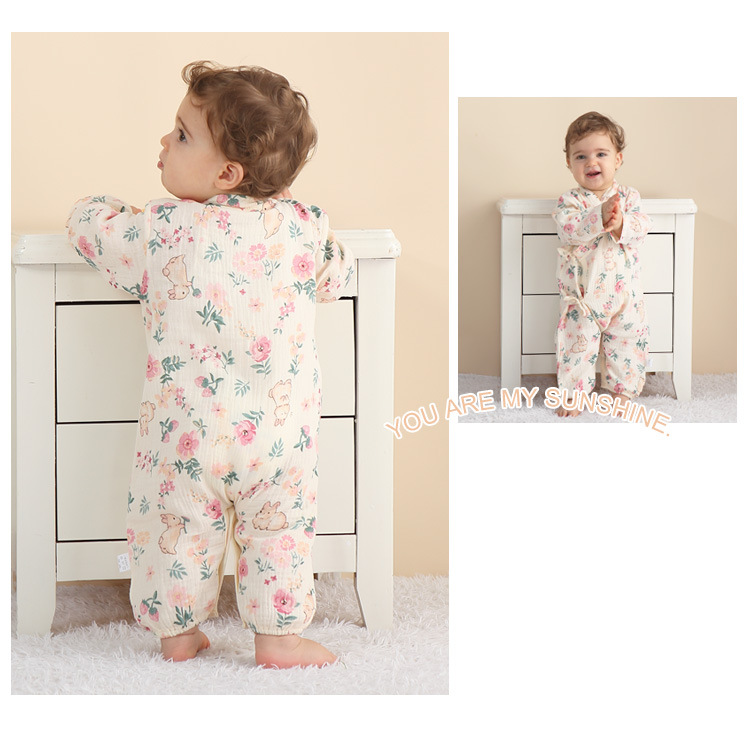 ・ロンパースの股部分はスナップボタン付きだからおむつ替えも簡単にできます。