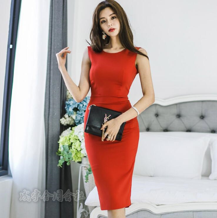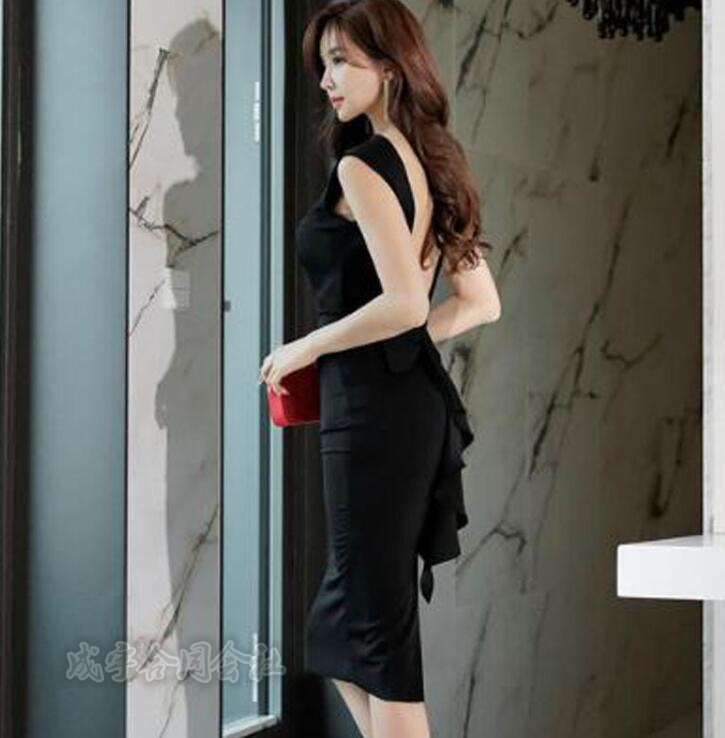 ノースリーブワンピース レディース ペンシル タイト バックリボン フリル 膝丈 夏 着痩せ フィット ロング ワンピース 背中見せ おしゃれ パーティードレス