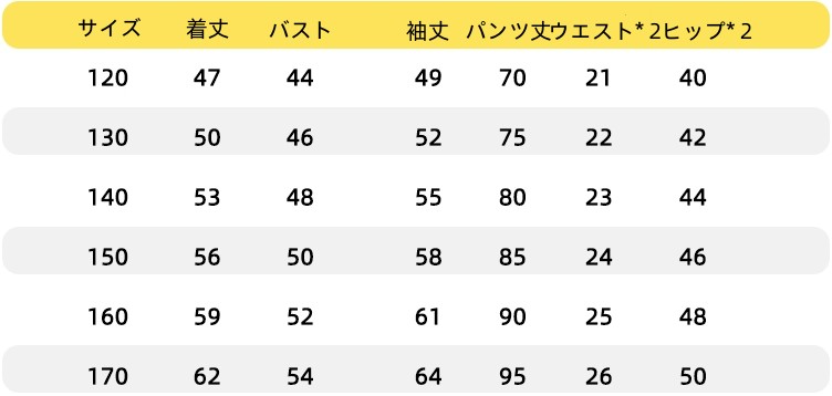 サイズ 120CM 130CM 140CM 150CM 160CM 170CM