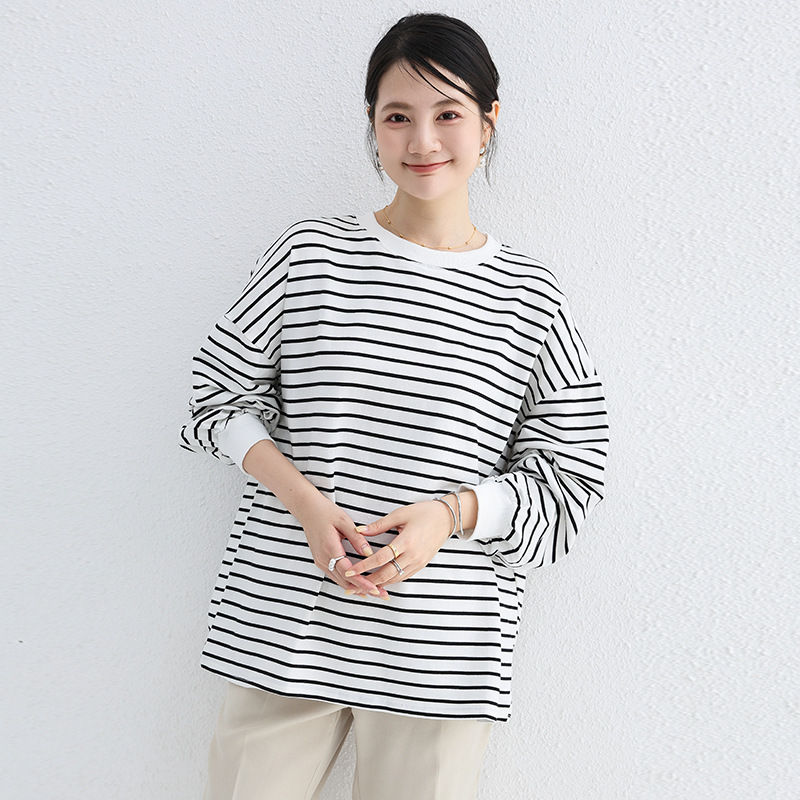 トレーナー レディース ゆったり スウェット カットソー 長袖 可愛い ビッグシルエット プルオーバー おしゃれ Tシャツ ストライプ 大きいサイズ カジュアル