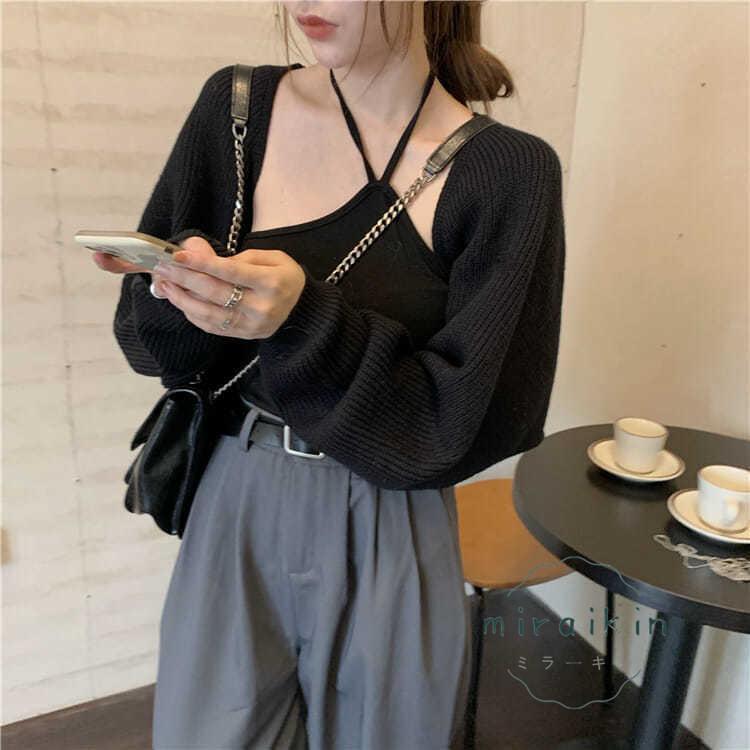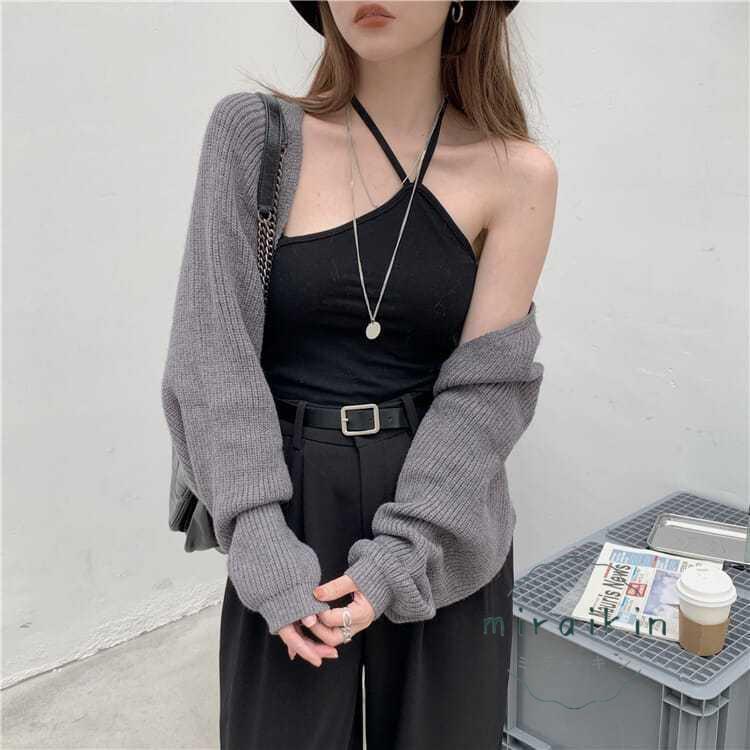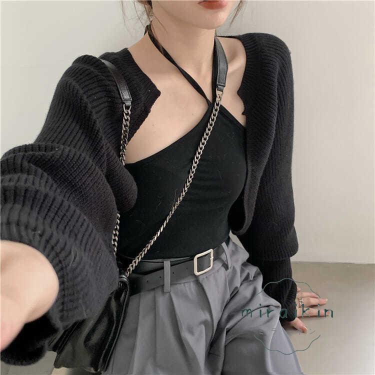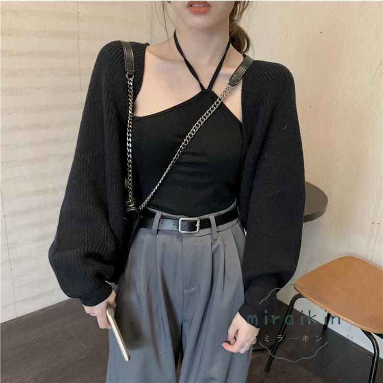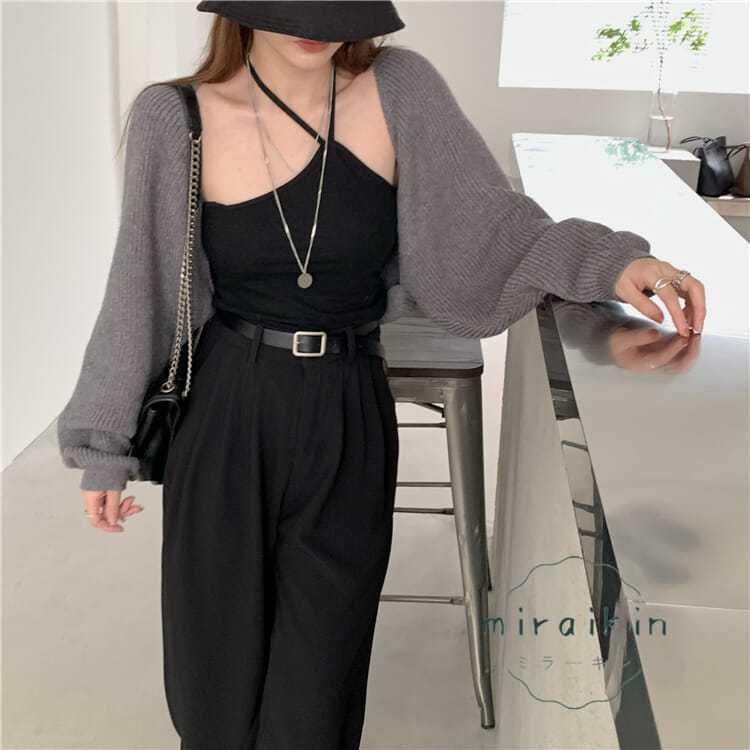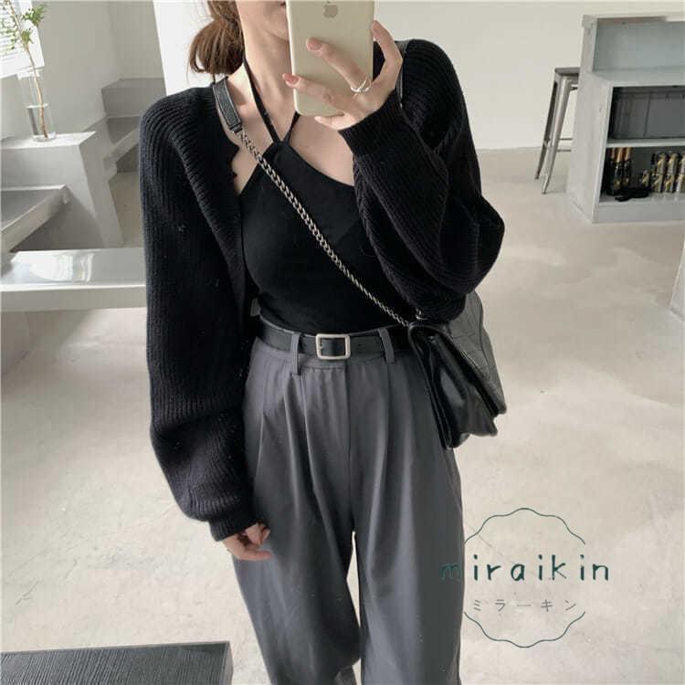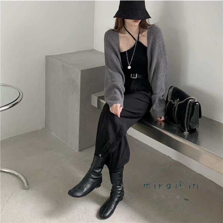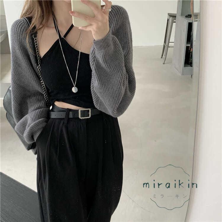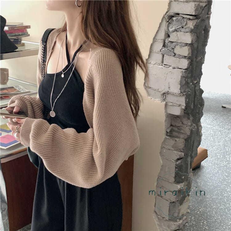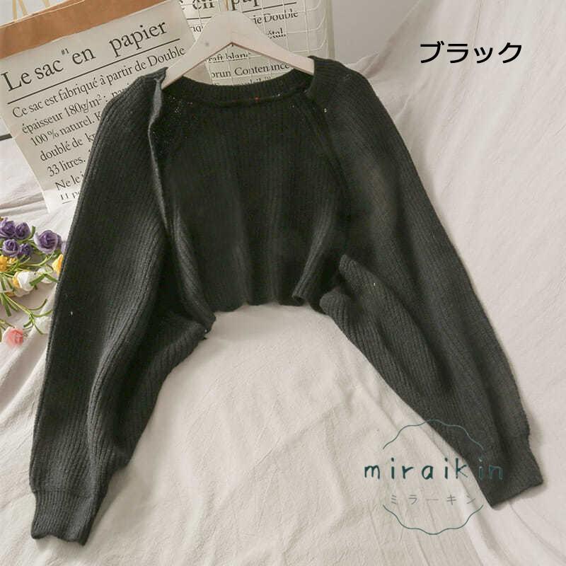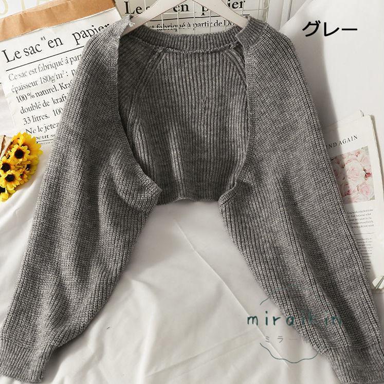 ボレロニットカーディガン クロップド丈 秋 レディース 大人カジュアル 長袖ショート丈カーデ 前開きニットトップス 韓国 ドロップショルダー 羽織り