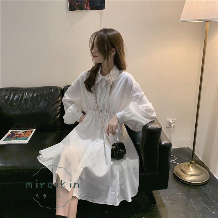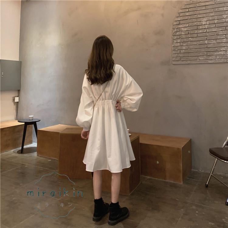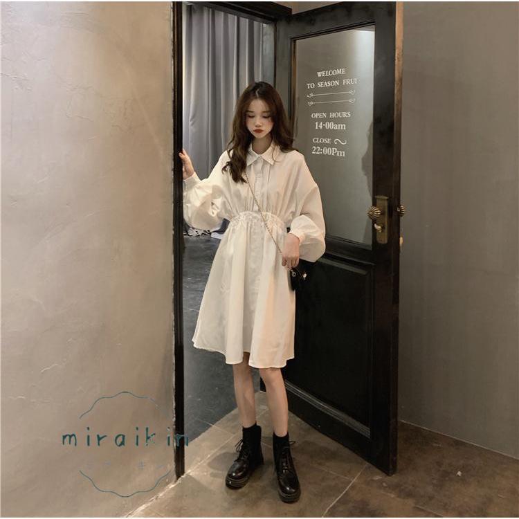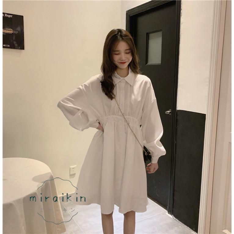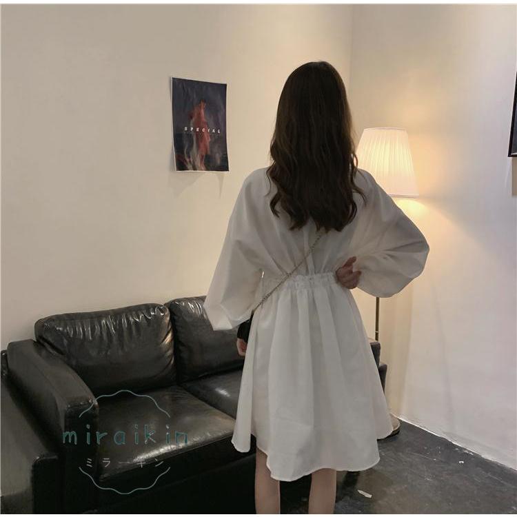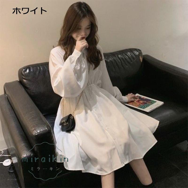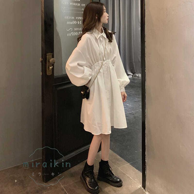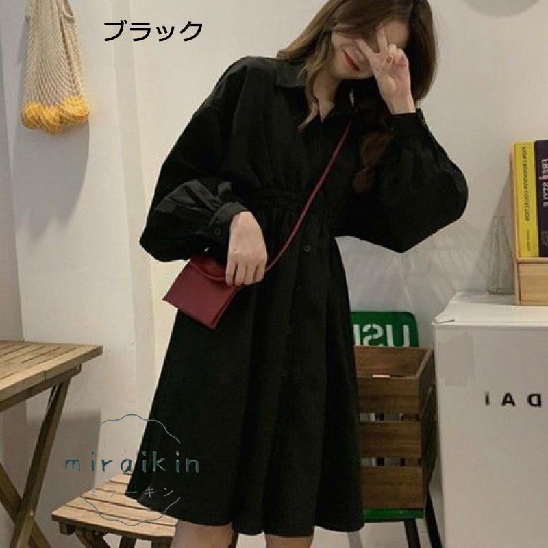 シャツワンピース 長袖 レディース ワンピース ウエストマーク チュニックワンピ ボリューム袖 おしゃれ ミニワンピース きれいめ 20代 30代