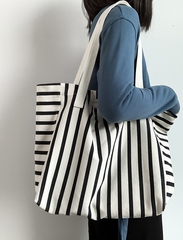 送料無料 ストライプボーダーキャンパストートバッグ 鞄 ショルダーバッグ カジュアル ズバッグ 秋冬 AW 春夏