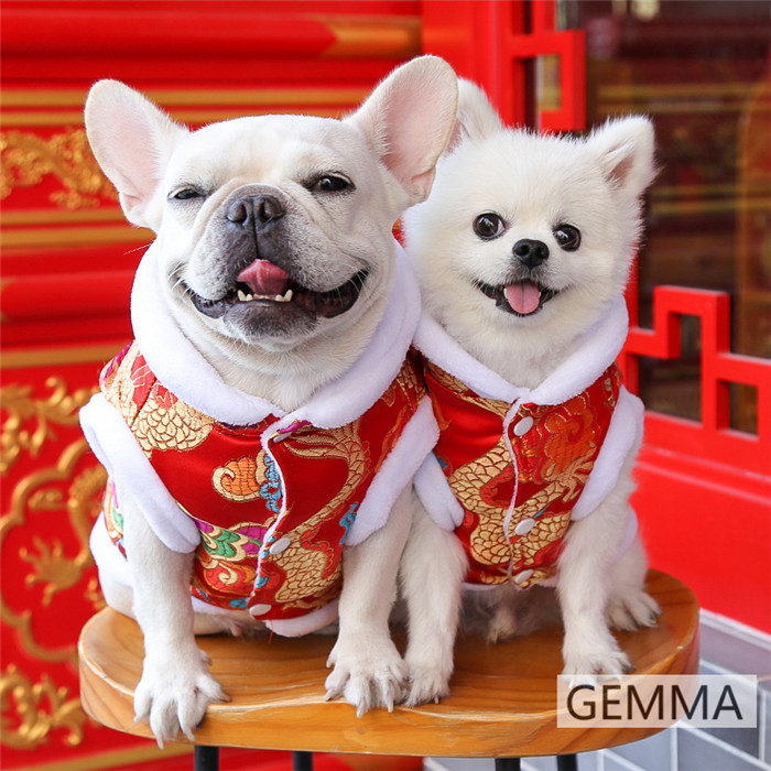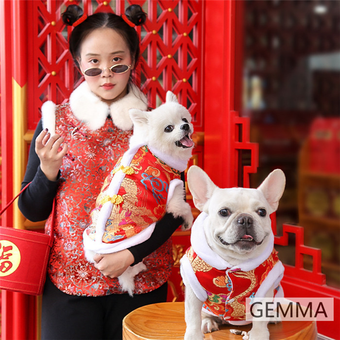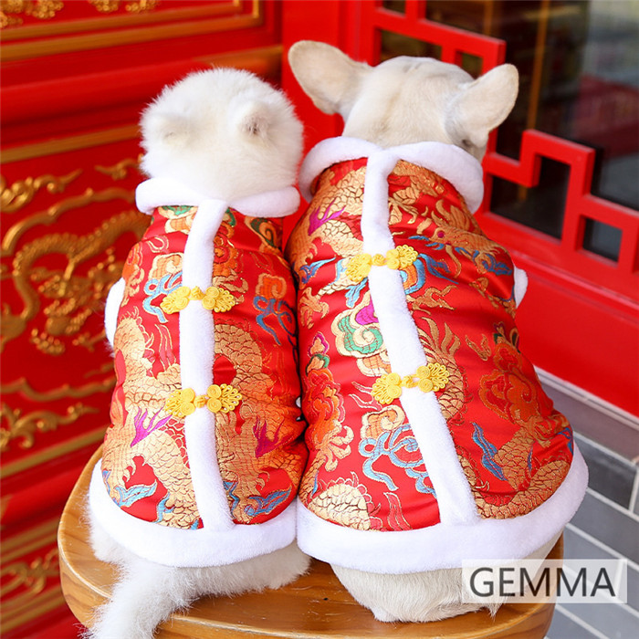 犬服 チャイナ風 龍柄 レッド ドッグウェア 可愛い 猫服 送料無料 ペットウェア 小型犬 暖かい いぬ 犬の服 春節