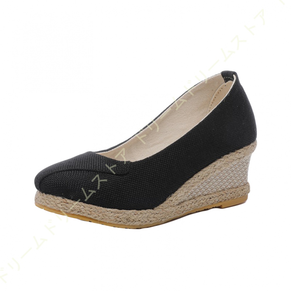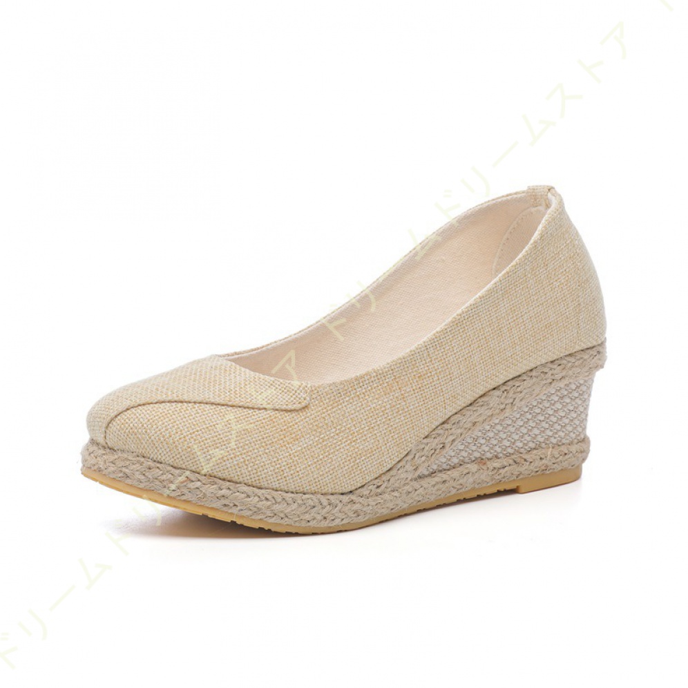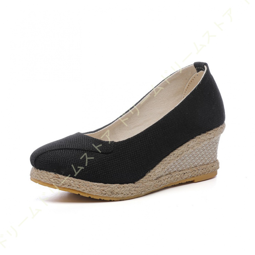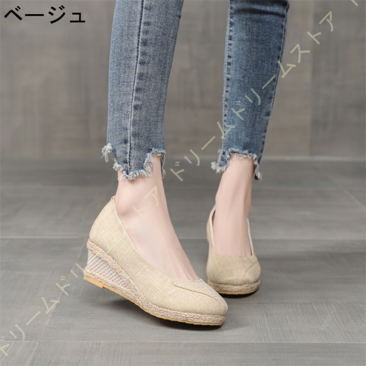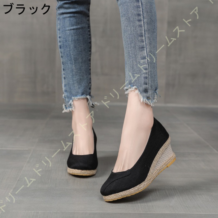 歩きやすく履きやすいウェッジヒール。ストームがついている、高低差を緩和し、足への負担を軽減。