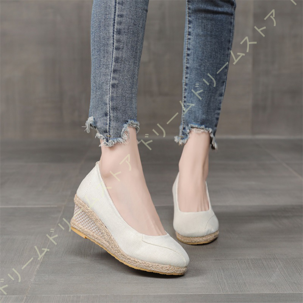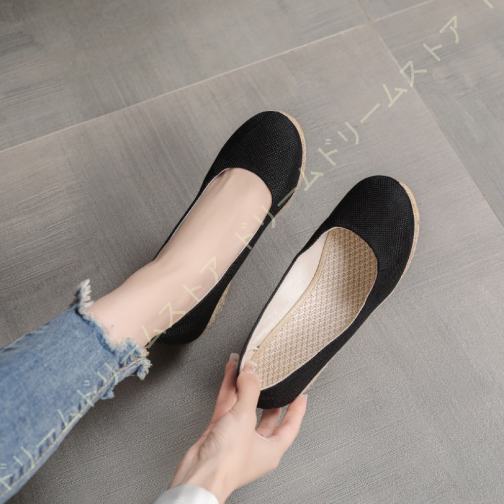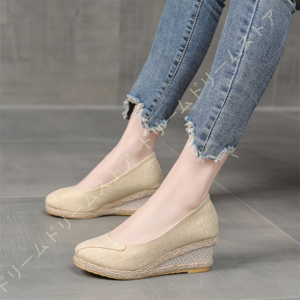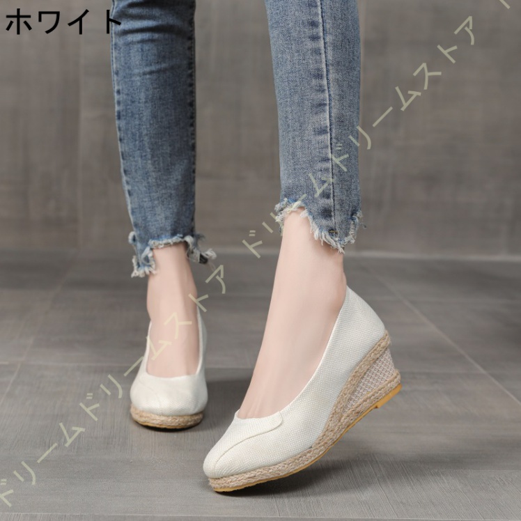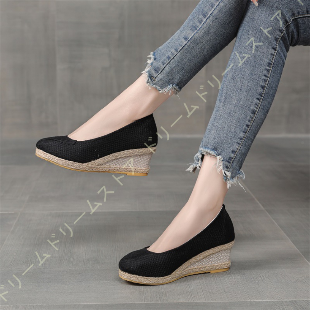 歩きやすく履きやすいウェッジヒール。ストームがついている、高低差を緩和し、足への負担を軽減。