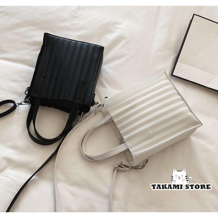 おしゃれショルダーバッグ トートバッグ 2WAY 手提げかばん レディース クリアストライプ 小ぶり カジュアル BAG 鞄 女性用