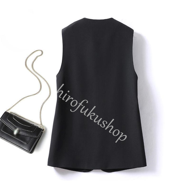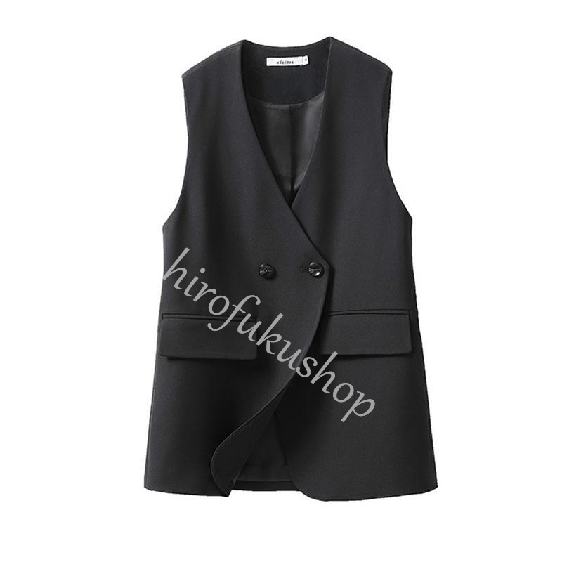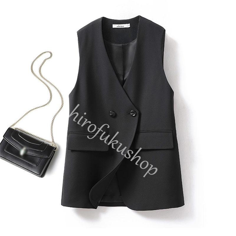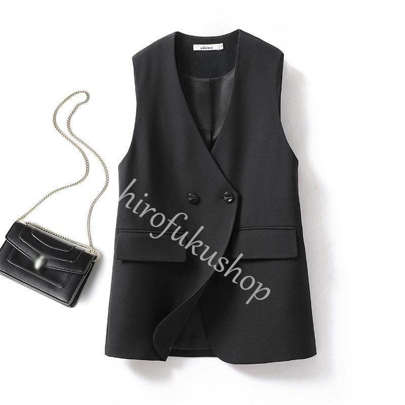 テーラードベスト レディース ジレ 前開き ベスト 春秋 ミディ丈 きれいめ 羽織り おしゃれ ノースリーブ