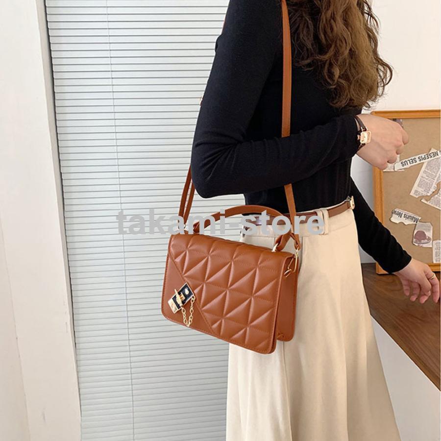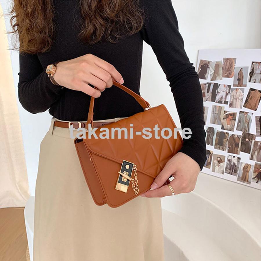 おしゃれ ショルダーバッグ 斜めがけ フェイクレザーかばん オフィスカジュアル ハンドバッグ 小さめ フラップバッグ韓国