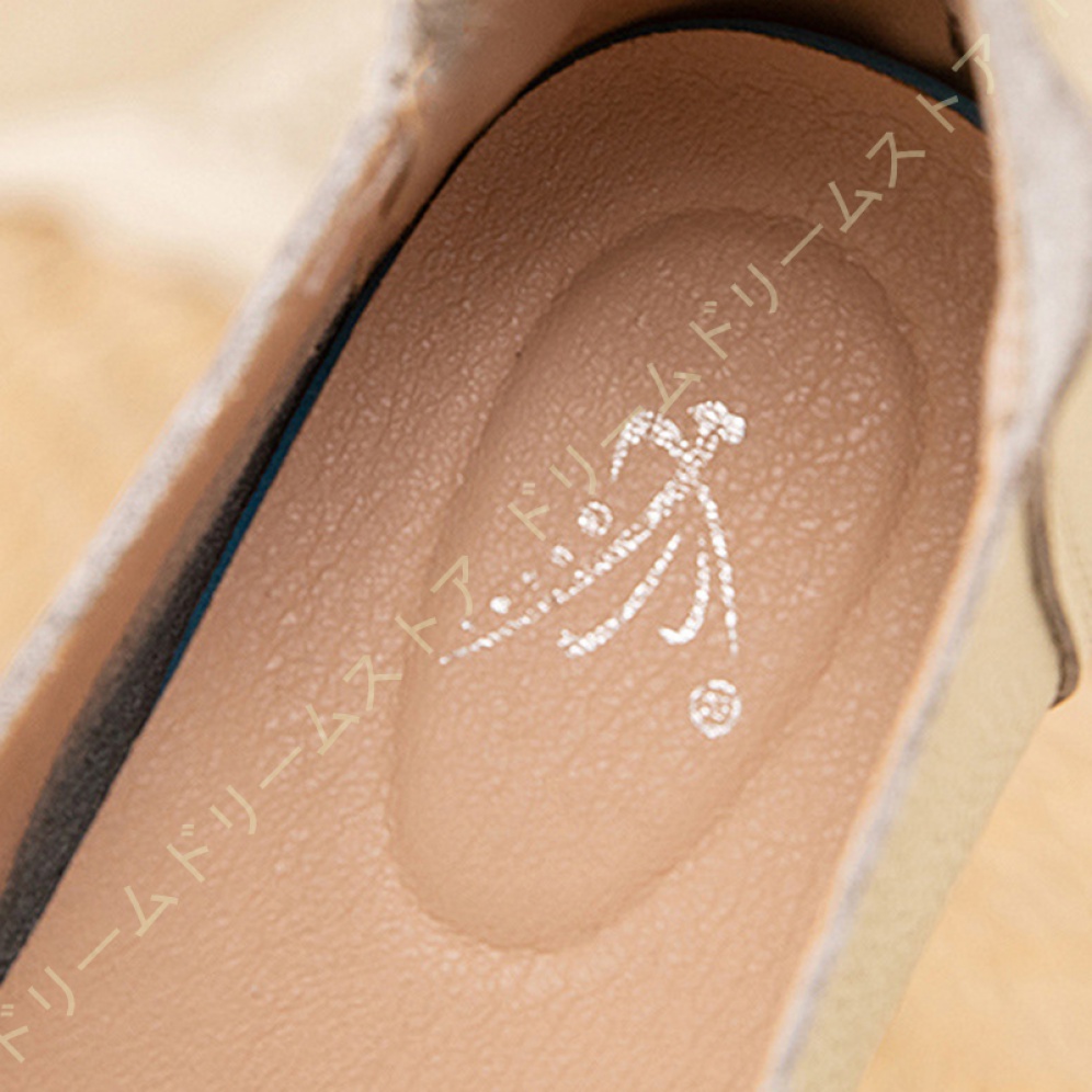 歩きやすく履きやすいウェッジヒール。ストームがついている、高低差を緩和し、足への負担を軽減。