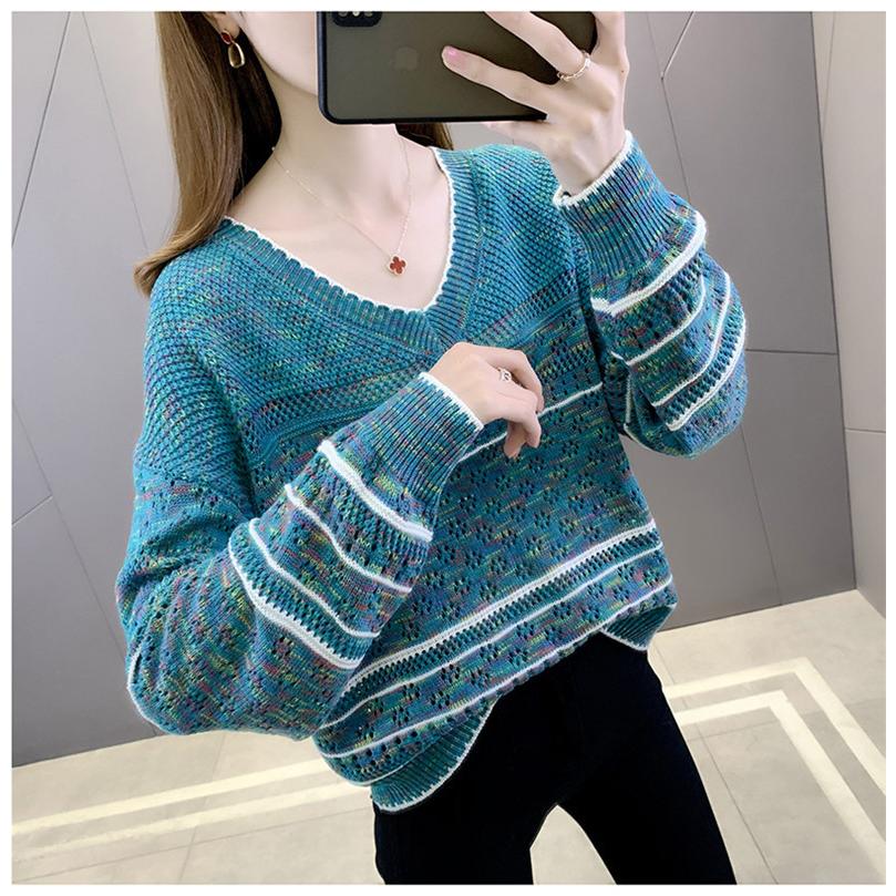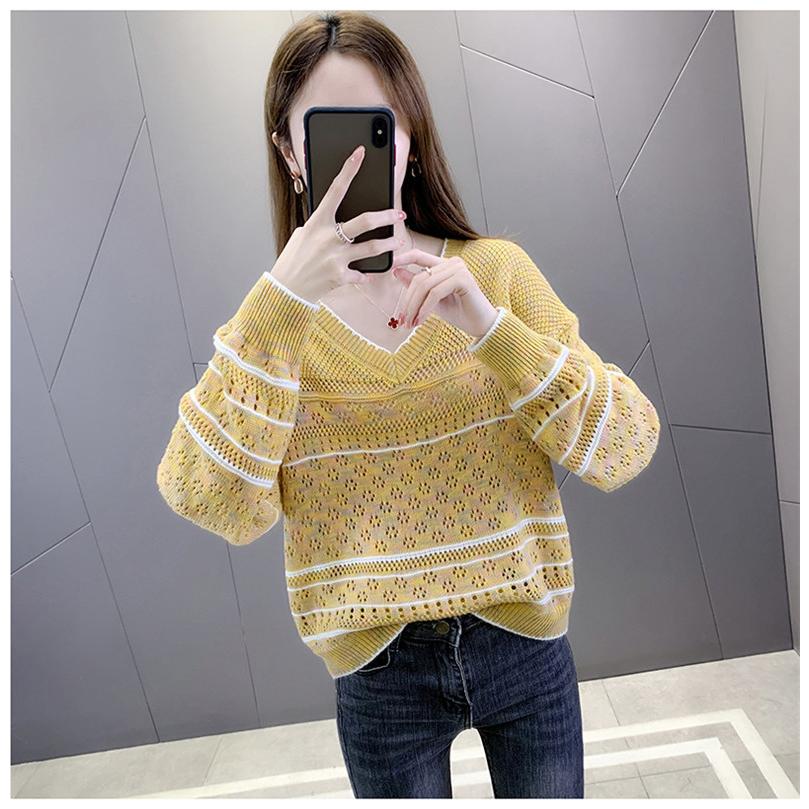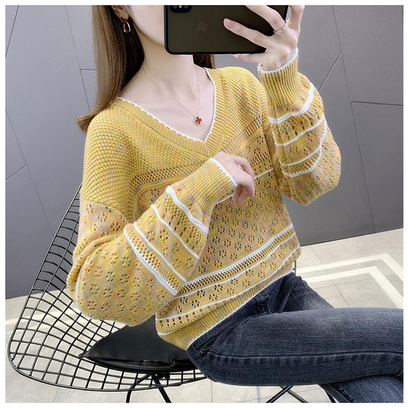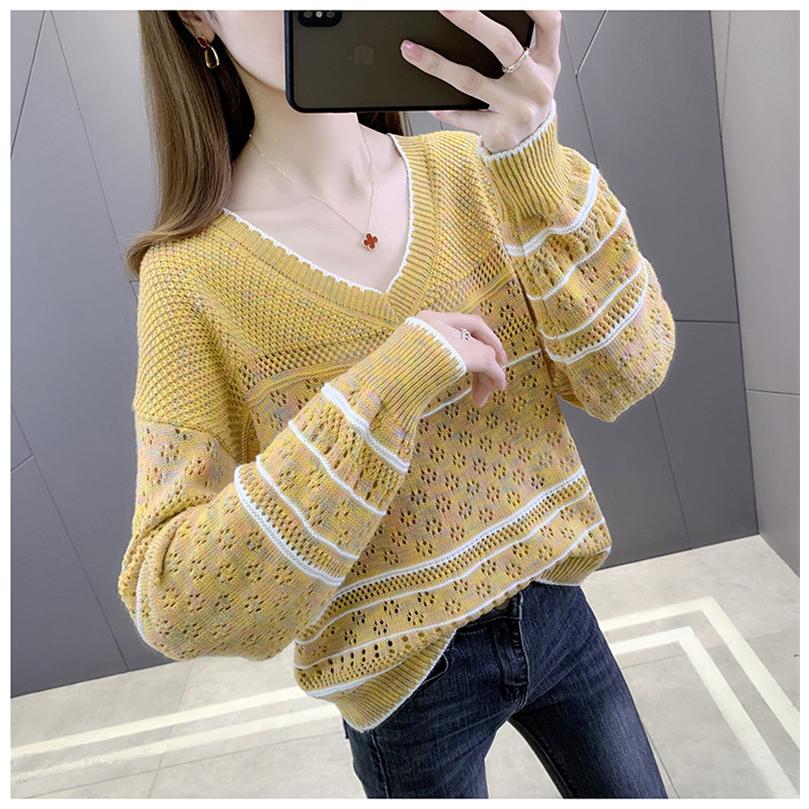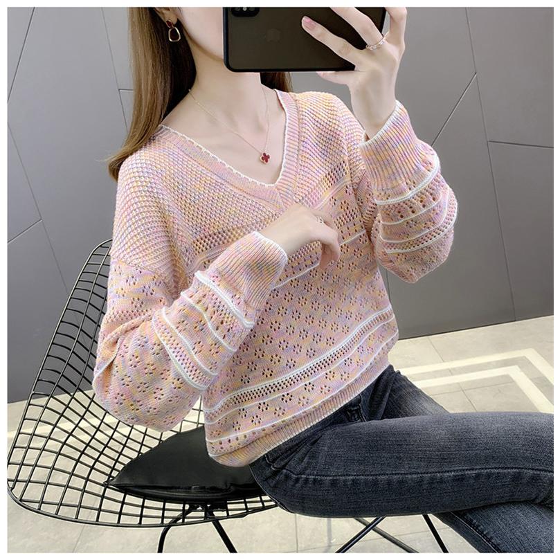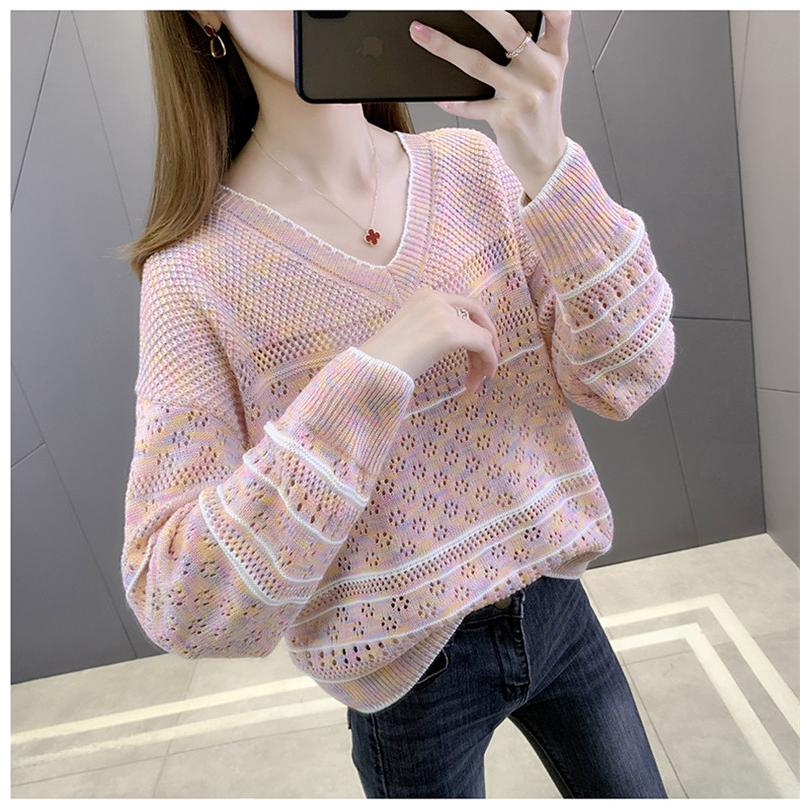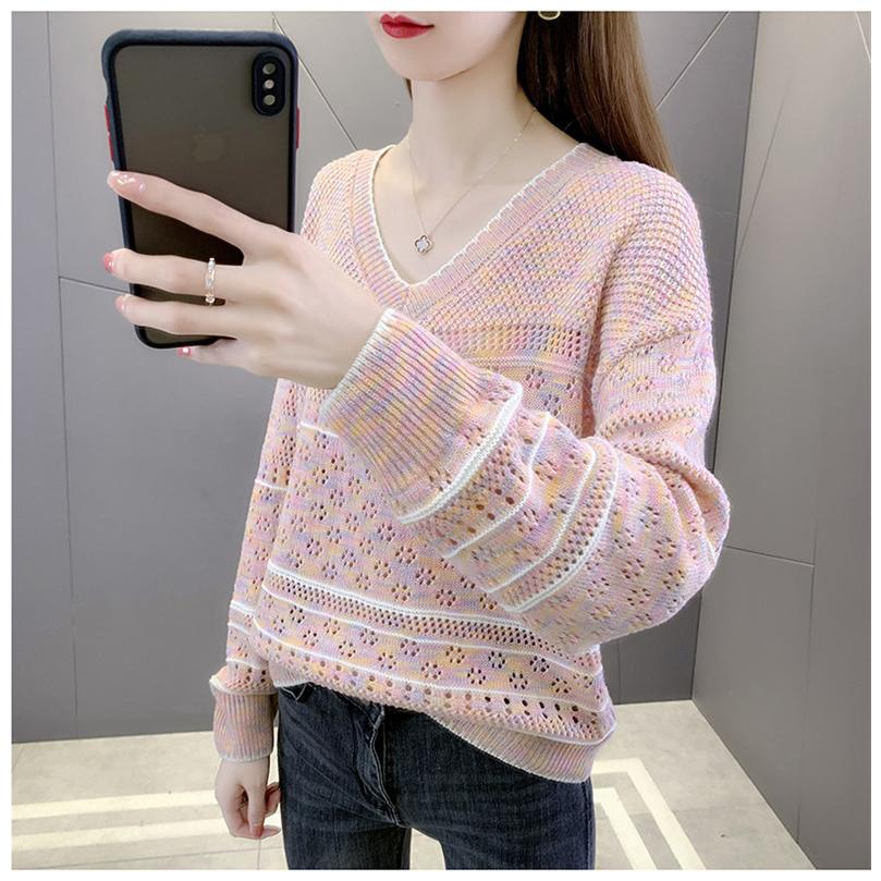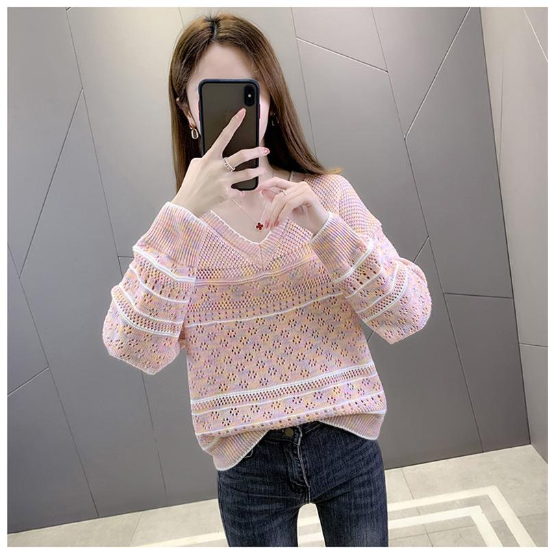 レディース ニット トップス 透し編み ニットソー ファッション 長袖 女の子 フェミニン 大人 Vネック 秋 夏新作 プルオーバー