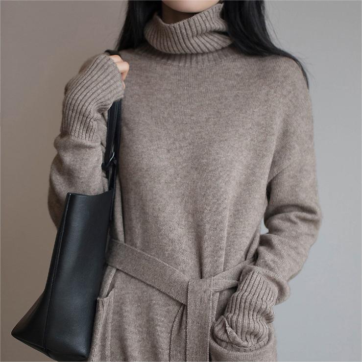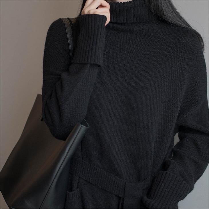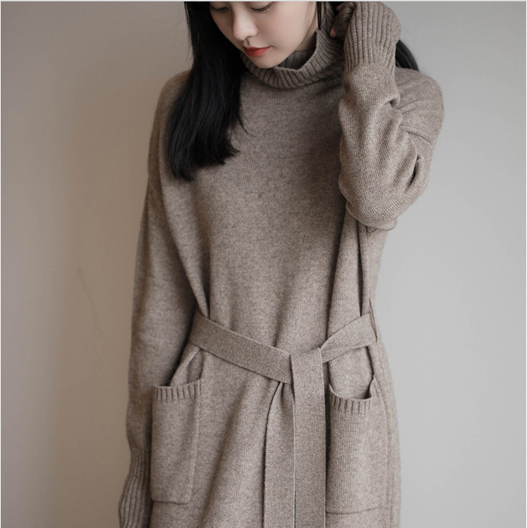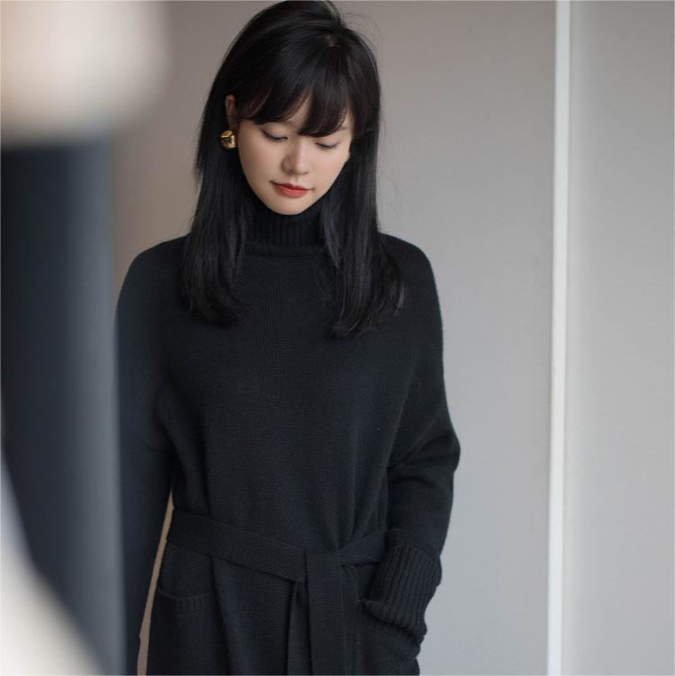 ニットワンピース ロングワンピース レディース 膝下 ゆったり 体型カバー 秋冬 オシャレ韓国風 ストレートスカート 無地ハイネック 大人セーター 着痩せ